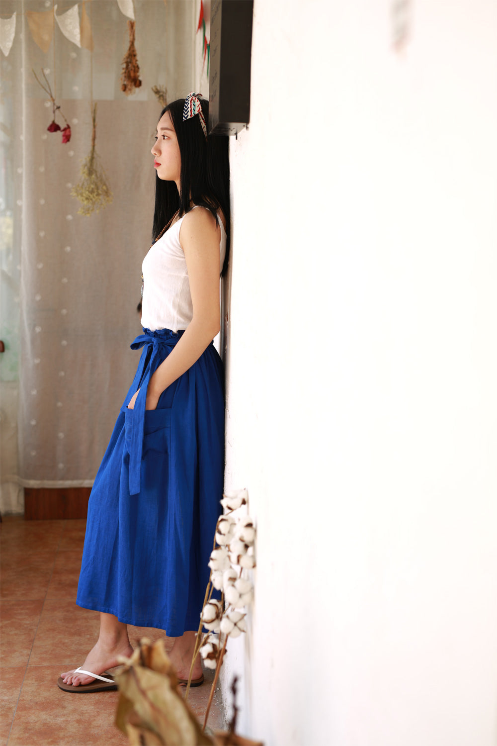 Retro-inspired and Fun, This maxi skirt is designed with draped side pockets, featuring in a gorgeous hues, the elastic waist make this maxi linen skirt comfortable. This linen skirt will be comfortable for wandering around warm beach terrains on holiday and will be your lovely new choice