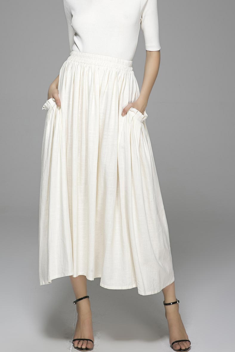 This high waisted skirt is crafted with soft white linen, the white maxi skirt featuring elastic waist and big pockets, The flowy pleated skirt is Chic and easy to wear.