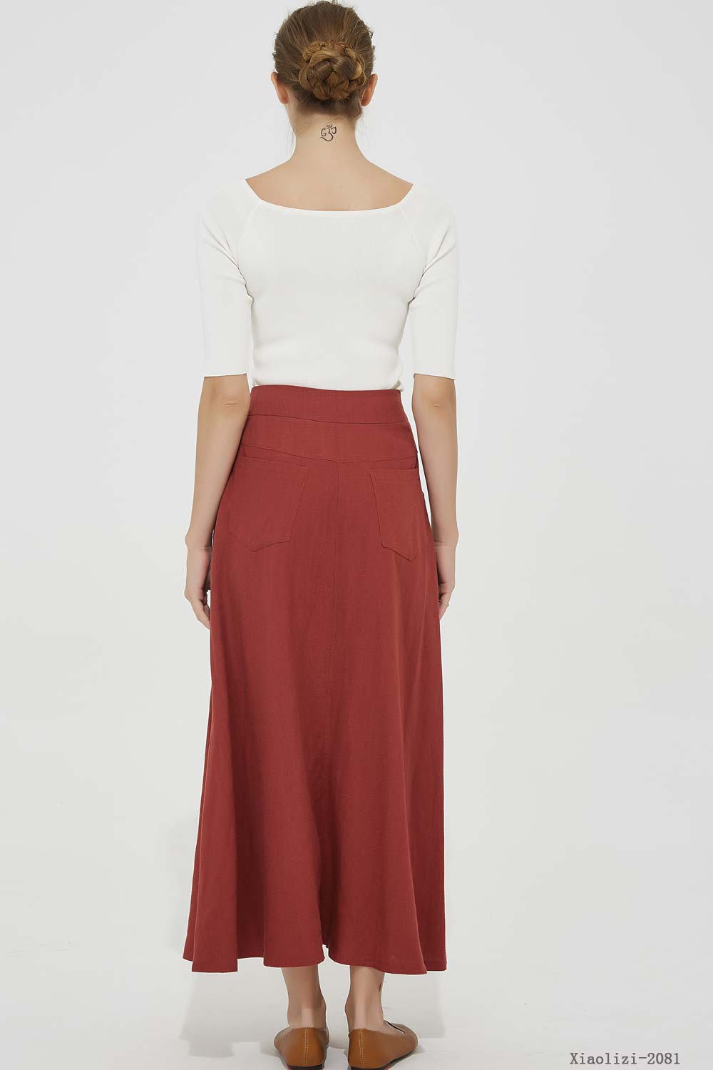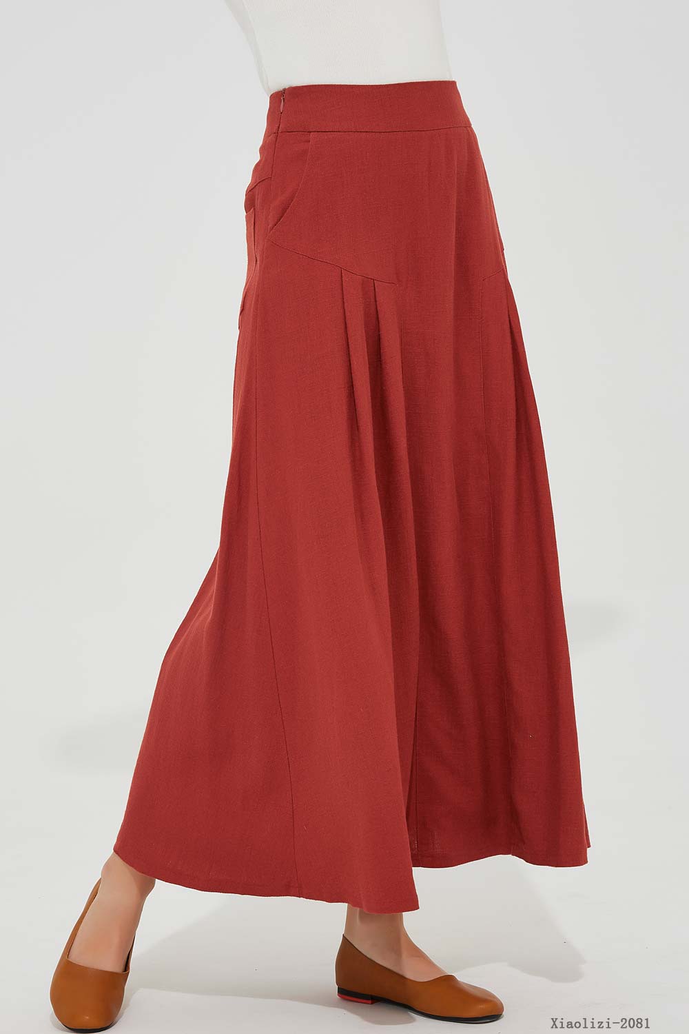 This red linen skirt is the best of both worlds: two sides of it is pleated. As always, besides fashion and sustainability we also strive to bring functionality to our clothing. Pockets, of course.