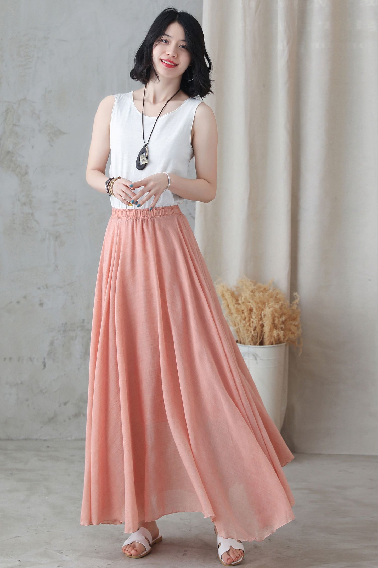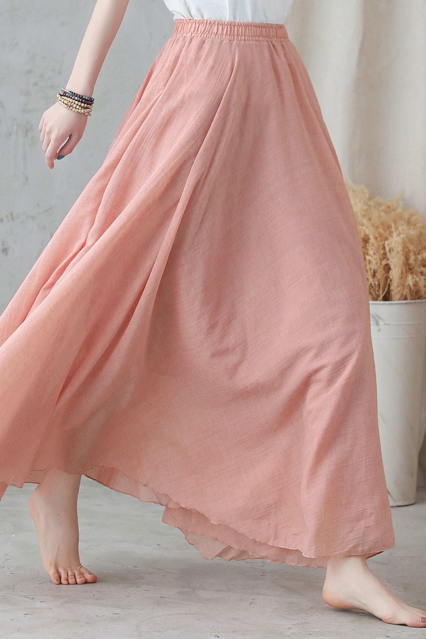 Pink Women's flowy Bohemian Swing Maxi Skirt 2745