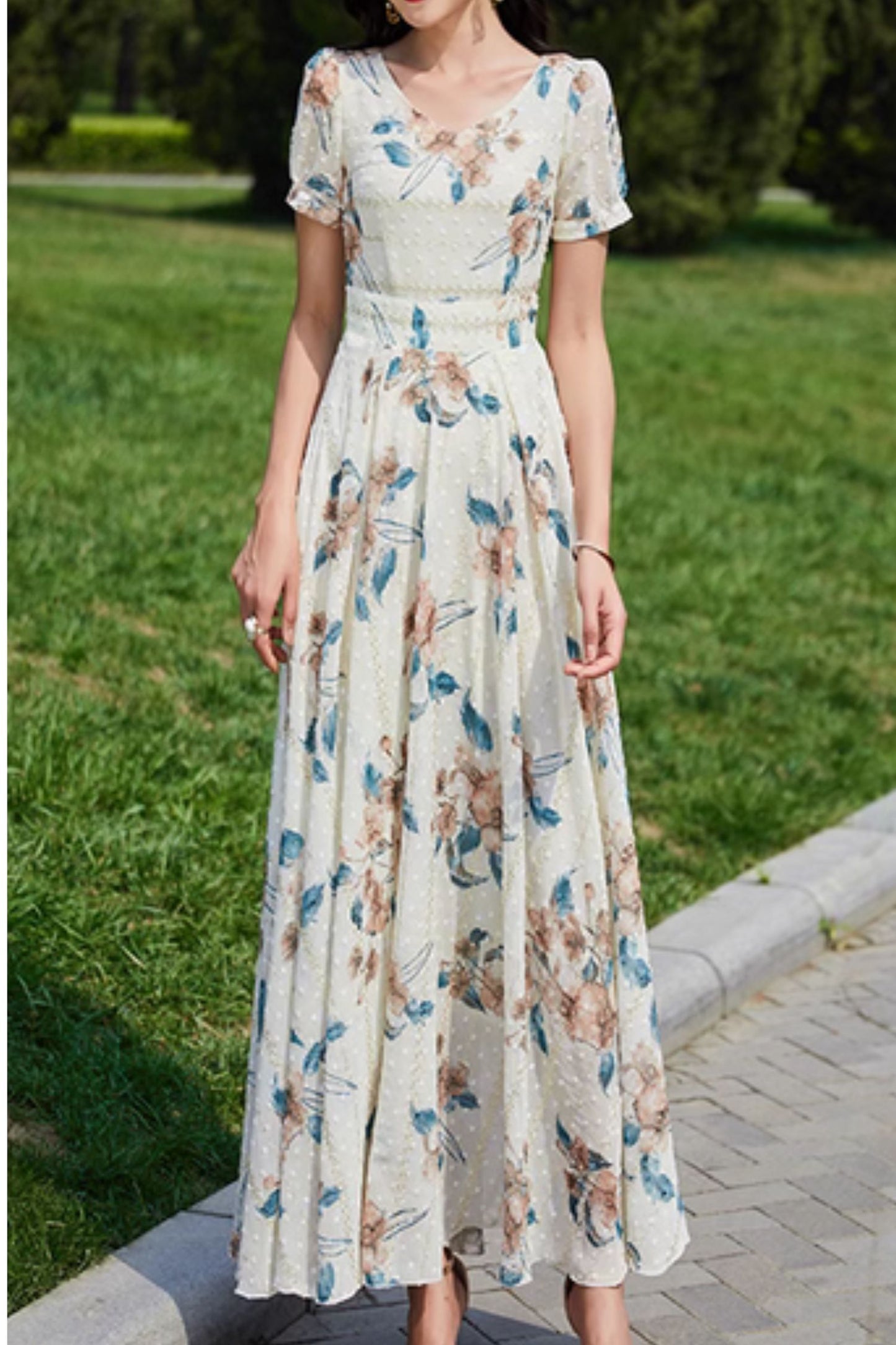 Effortlessly elegant, our Prom floral summer maxi chiffon dresses 5032 showcase a stunning floral print and flattering maxi silhouette. Made from luxurious chiffon fabric, these dresses are perfect for your summer soirées. Elevate your style and make a statement with our exclusive collection.