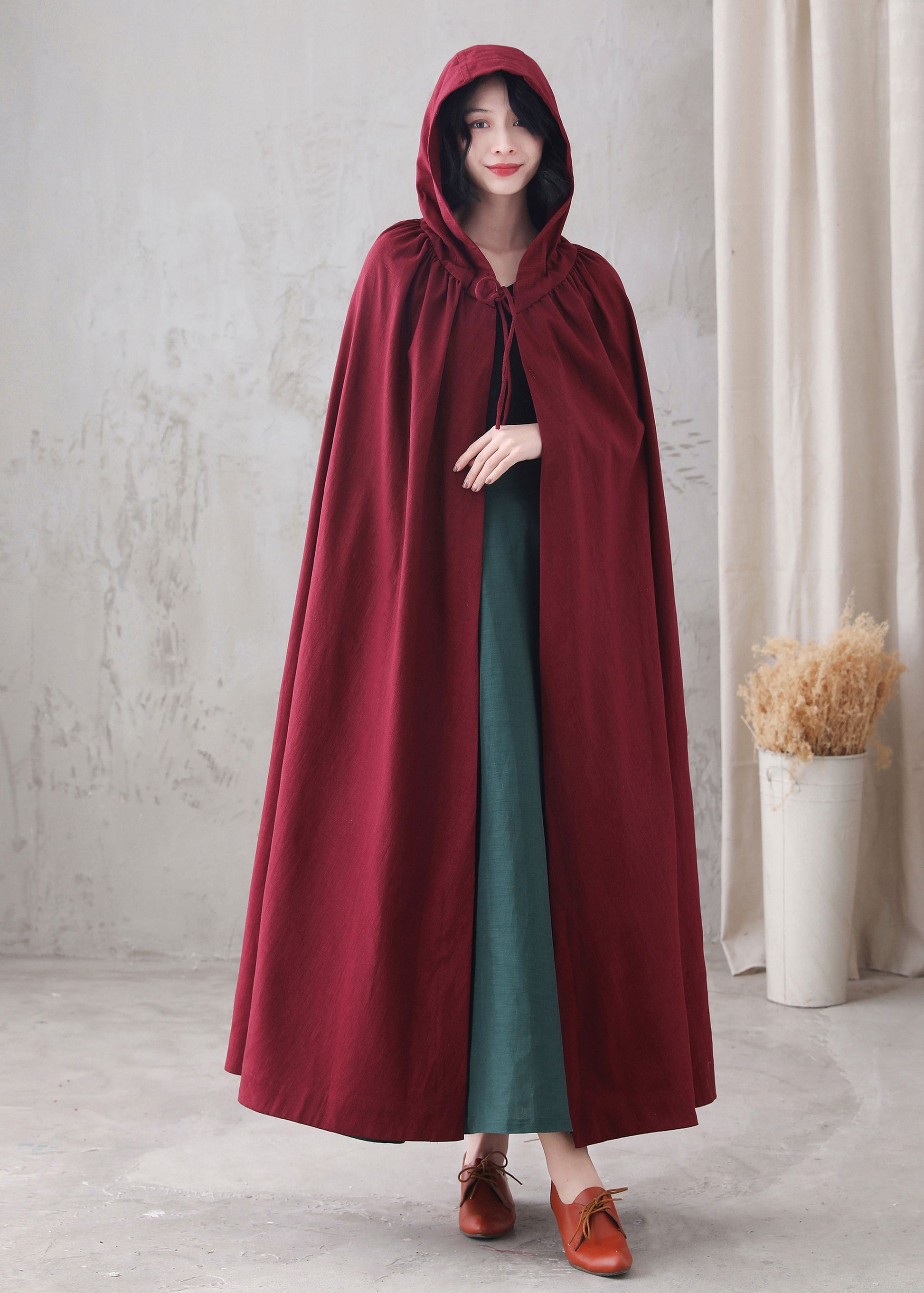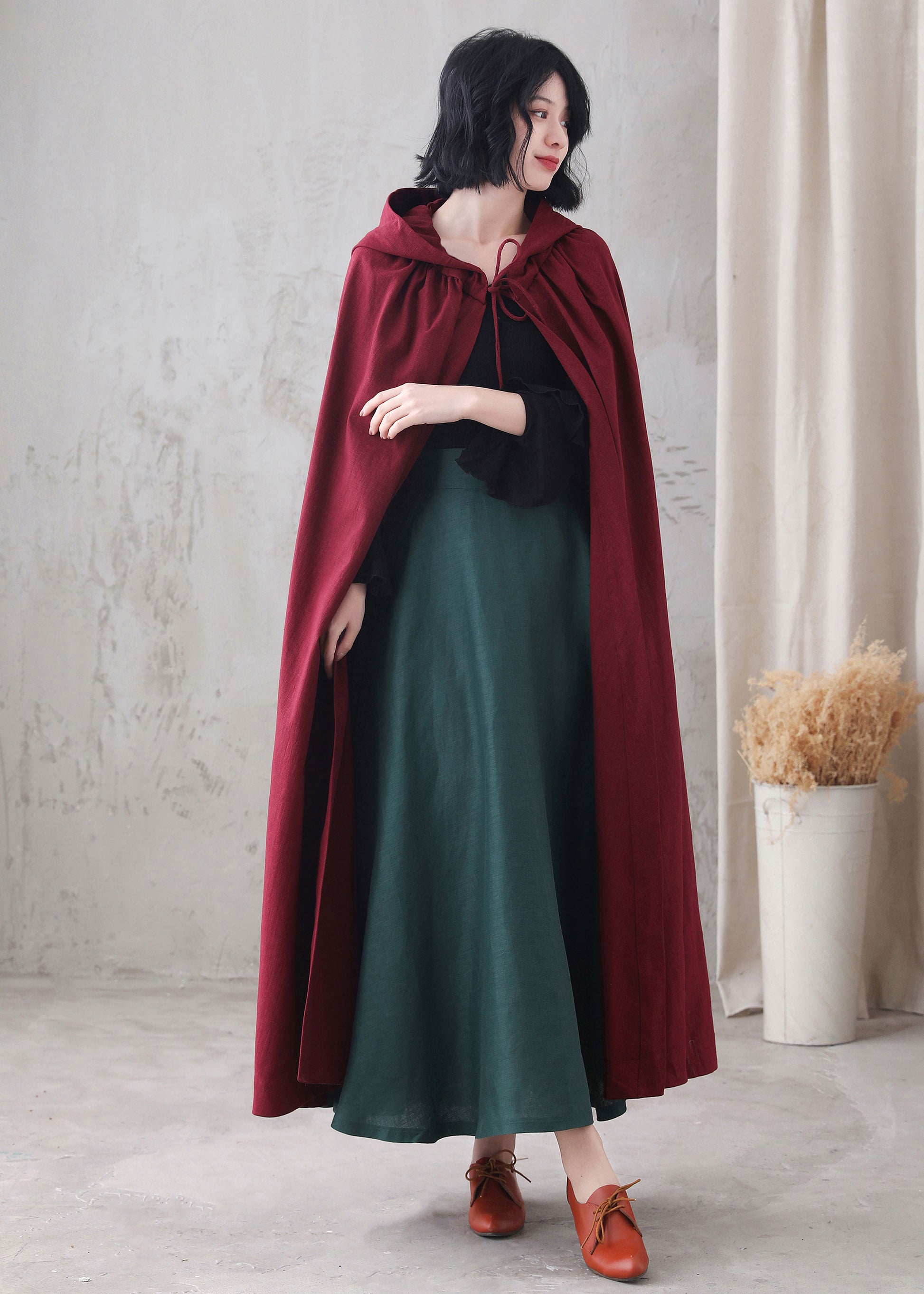 Step into timeless fantasy with this handmade red linen hooded cloak. Designed with a flowing silhouette and oversized drawstring hood, it evokes vintage charm and fairy-tale elegance. Perfect for layering in spring, autumn, and winter, this cloak is versatile for festivals, photography, or everyday artistic wear.
