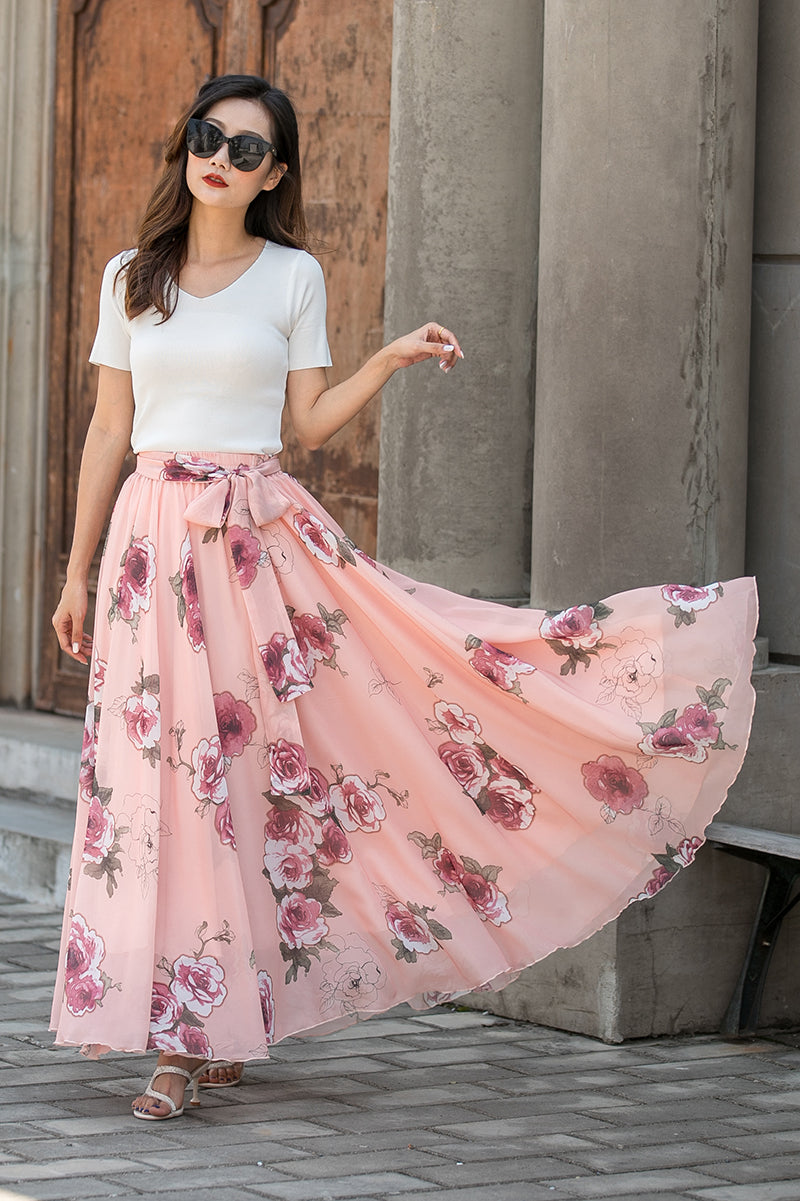 * The model is 170cm (5′7″) tall with a 80cm (31.5") bust, 66cm (26") waist. She is wearing the floral chiffon skirt in size XS.