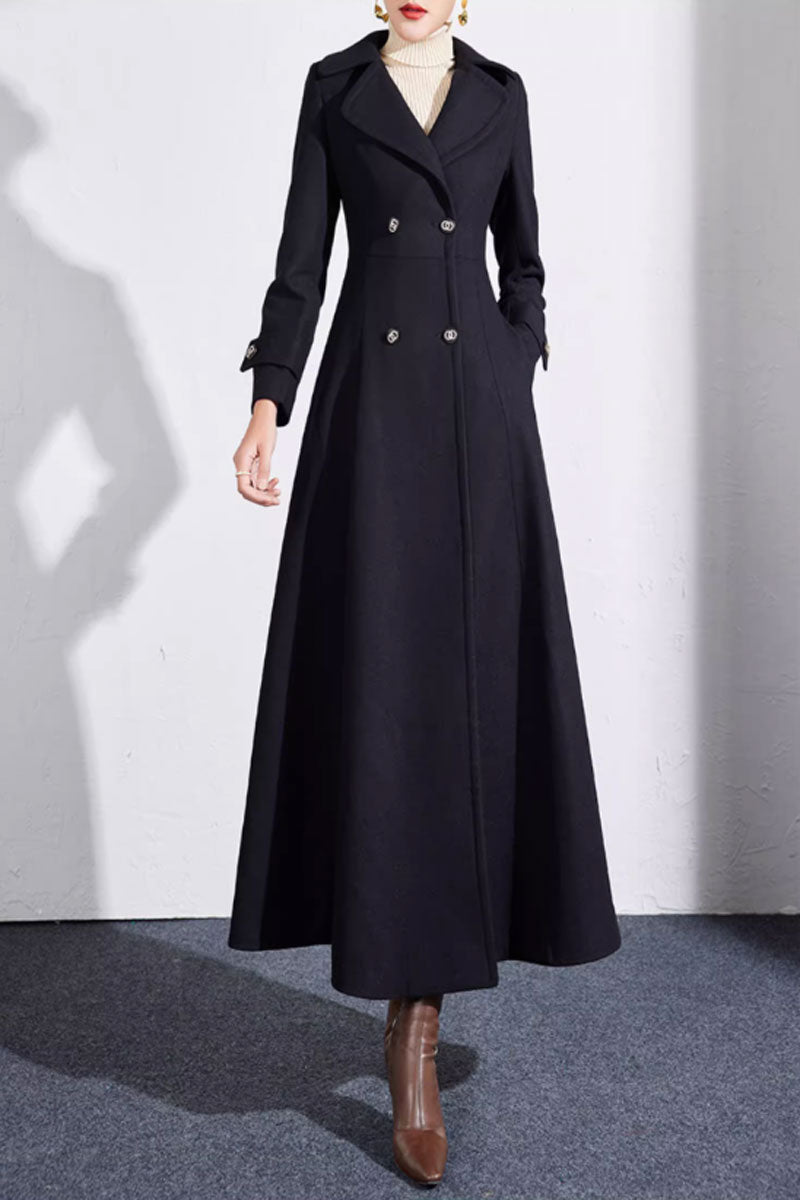 Indulge in luxury and timeless style with our Black Swing A-Line Long Wool Coat for women. Crafted with the finest quality wool, this coat boasts an elegant swing silhouette that flatters all figures. Its classic black color and long length make it a versatile and stylish addition to any wardrobe. Stay warm and chic this season with our premium coat.