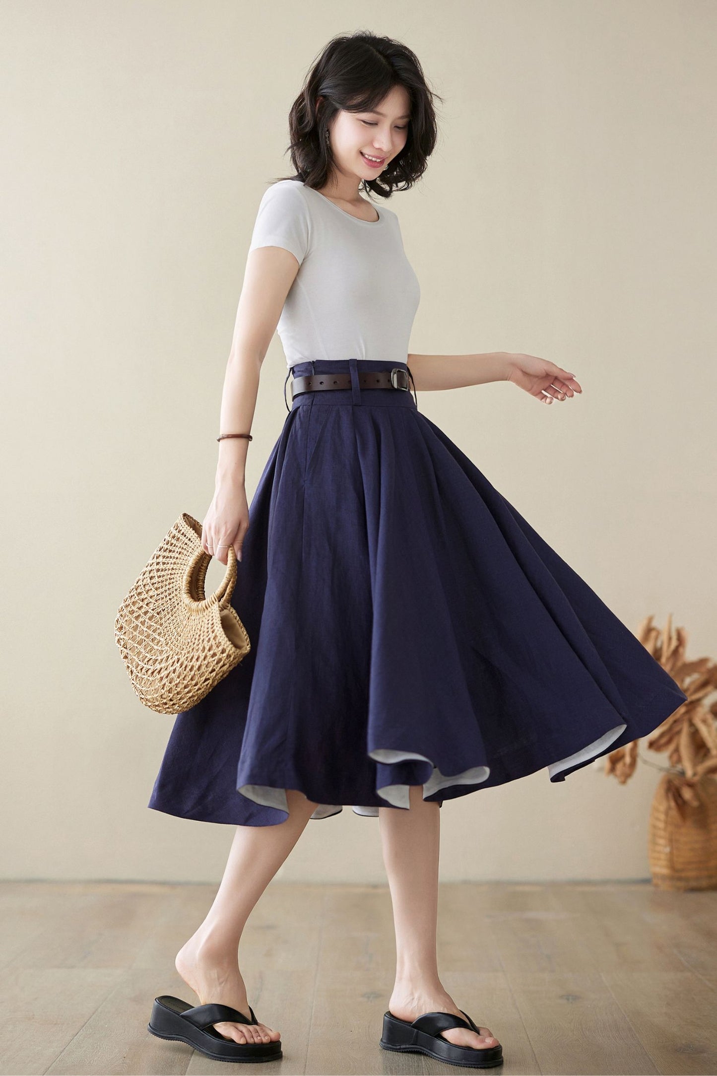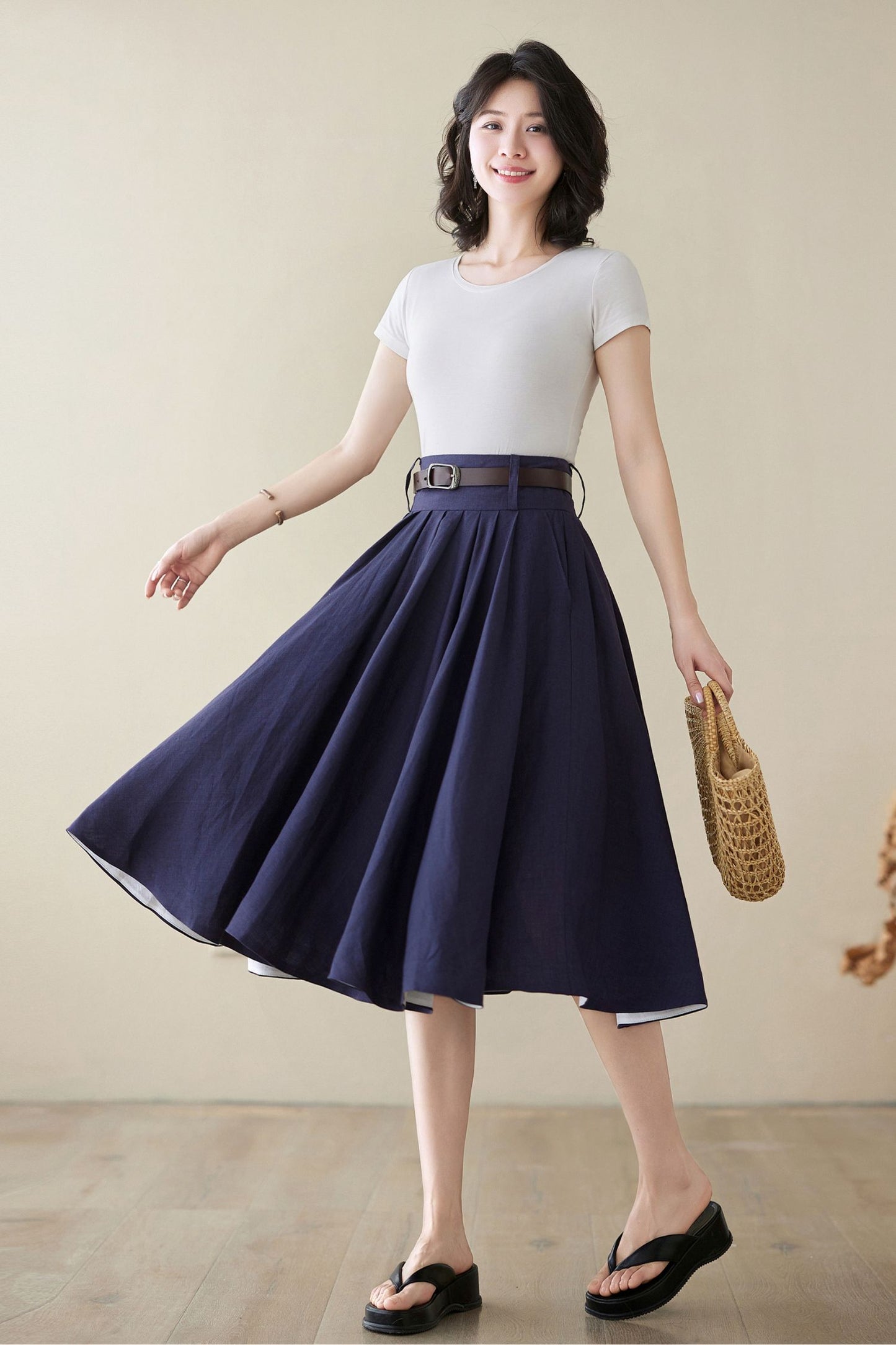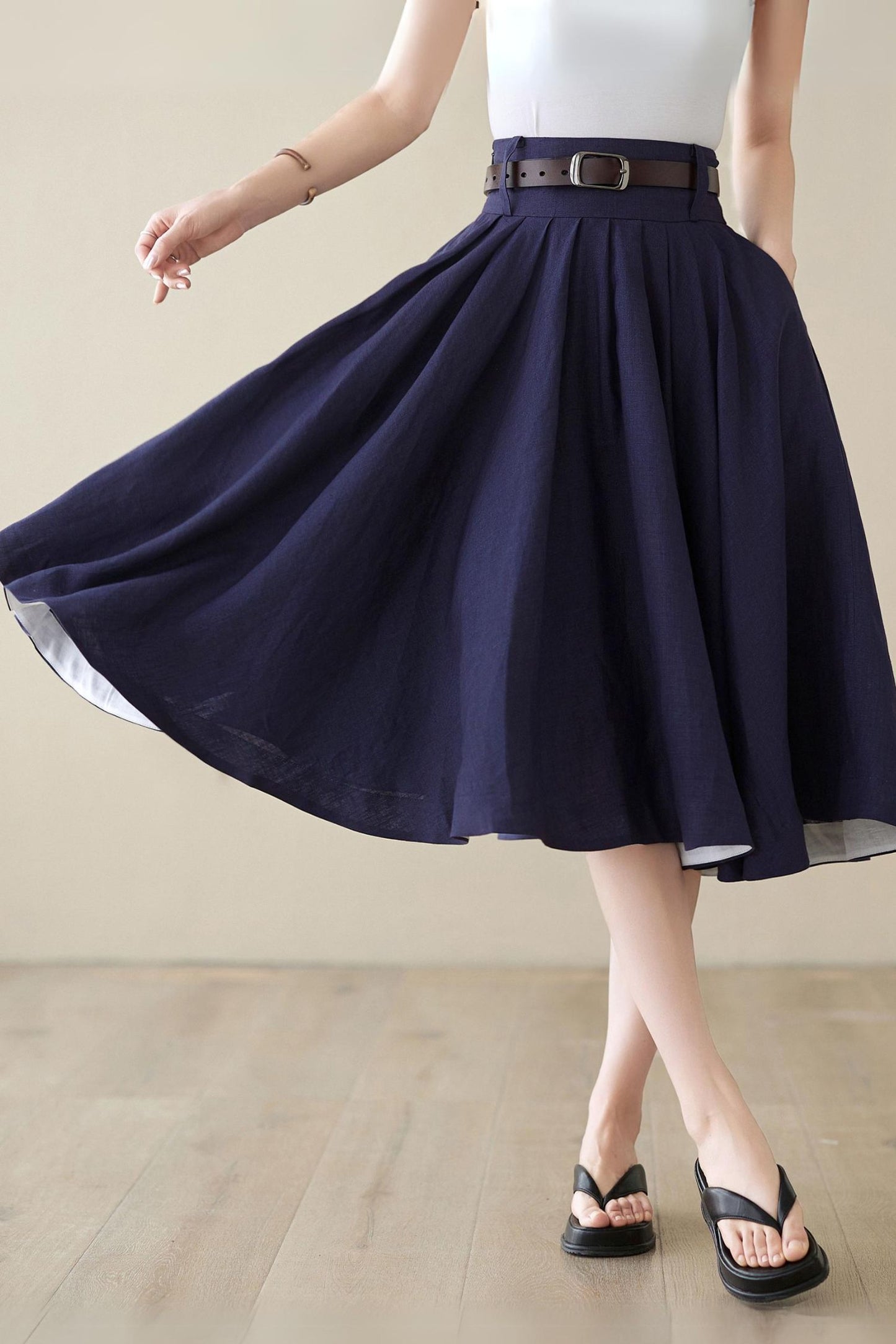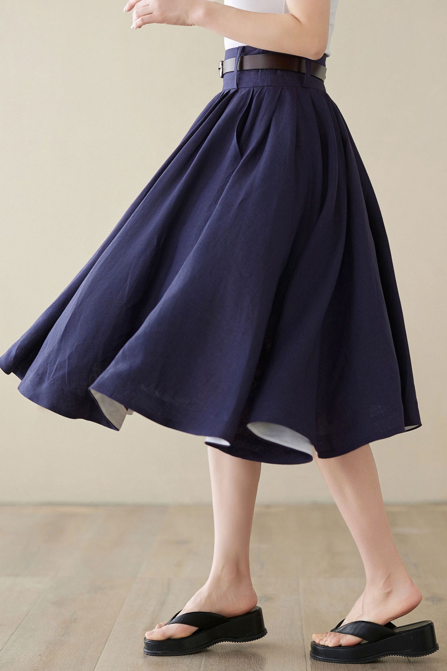 Swing midi circle linen summer skirt 4972