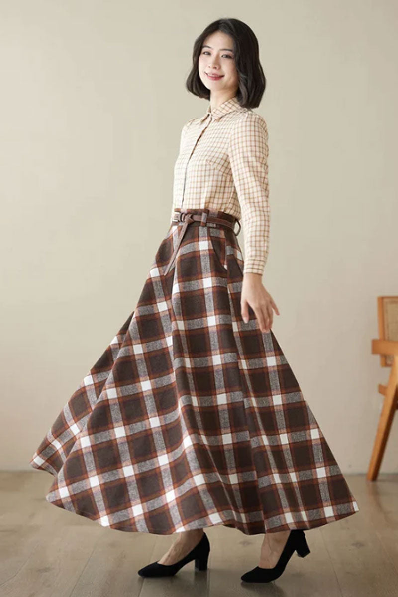 Step out in style with our Tartan wool skirt! Made from high-quality, long-lasting wool, this maxi plaid skirt is the perfect addition to your wardrobe. Stay warm and fashionable with this versatile piece that can easily be dressed up or down. Elevate your look and feel confident in this must-have skirt.