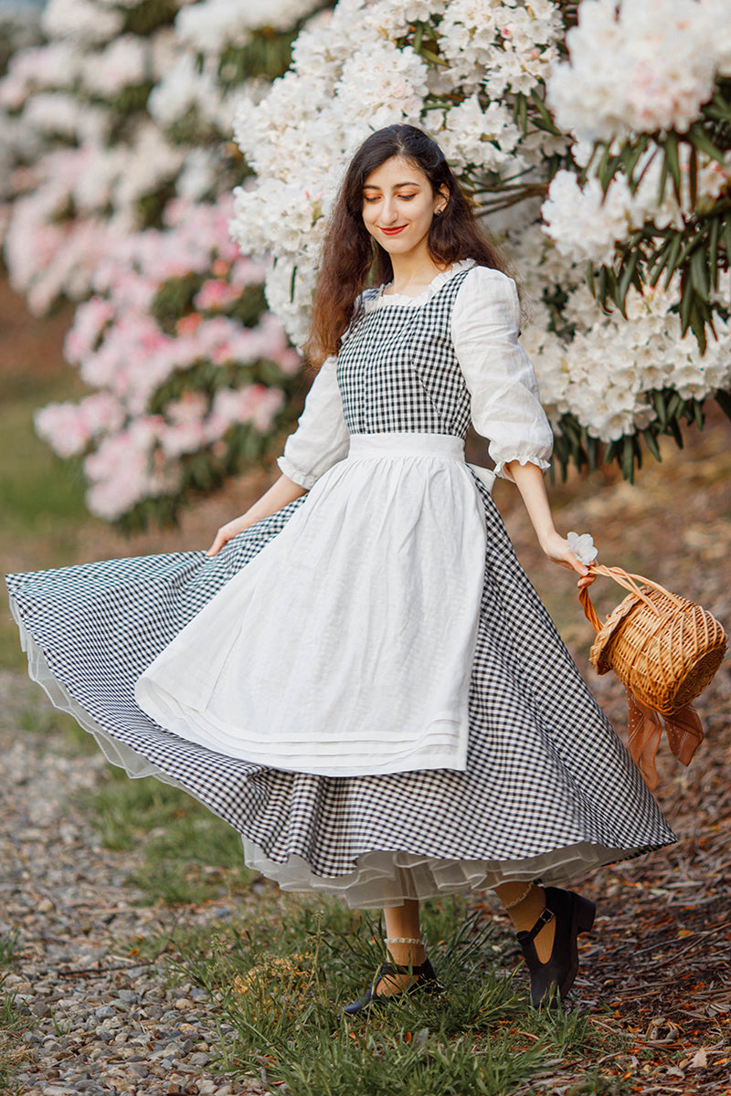 Vintage Inspired A-line Plaid Pleated Linen Dress 3479