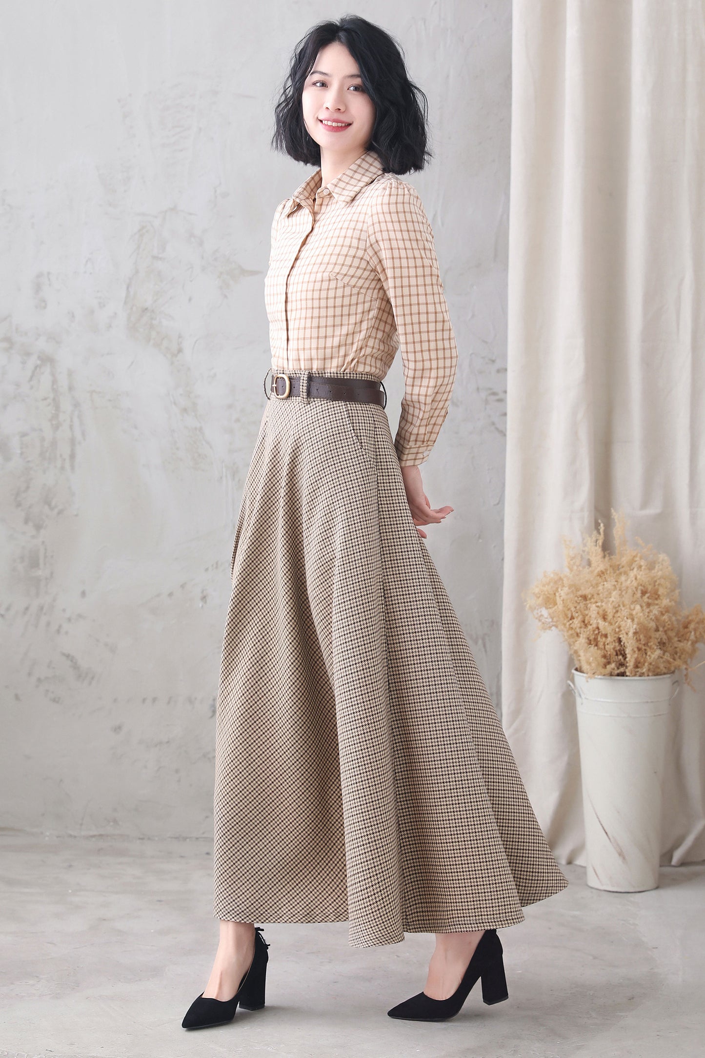 Vintage Inspired A Line Maxi Skirt with pockets 3349