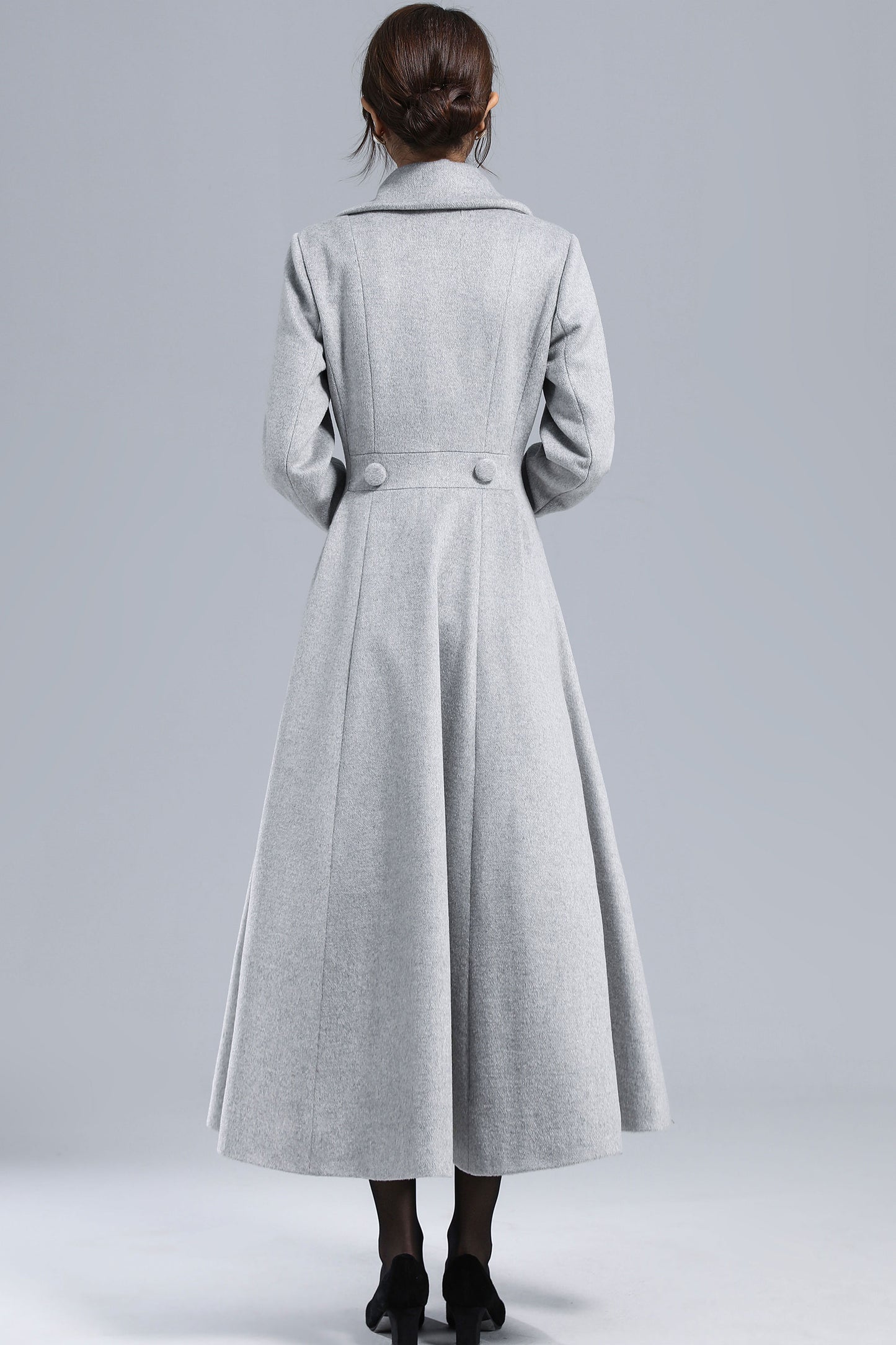 Light Gray Wool Coat – Elegant Double-Breasted Fit and Flare Winter Overcoat 3236