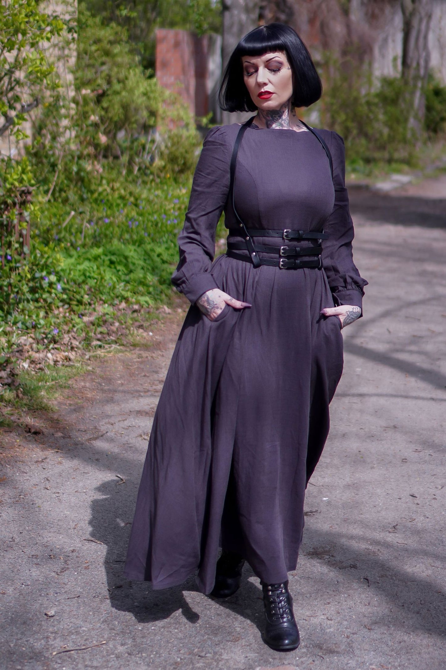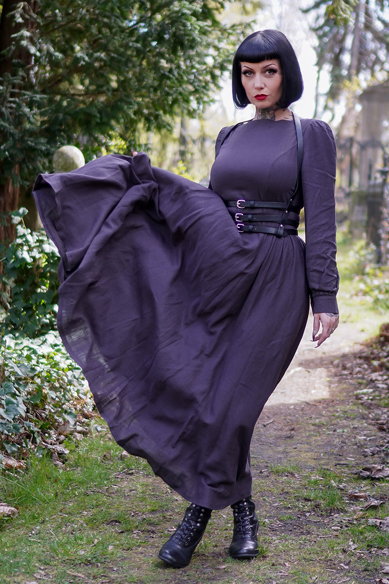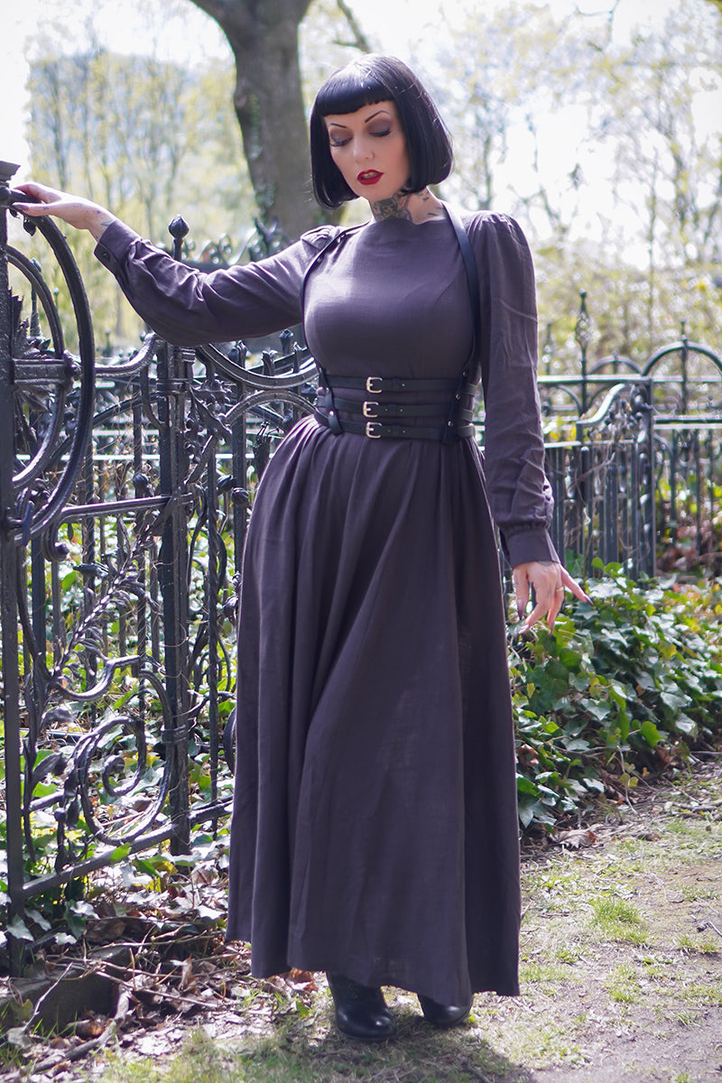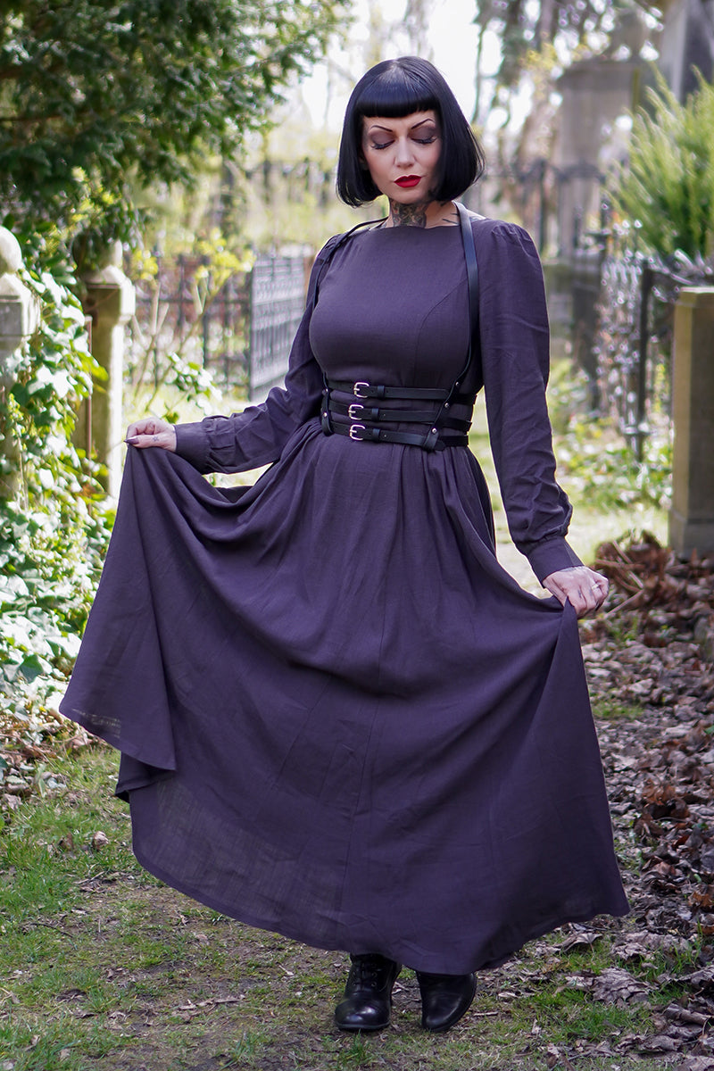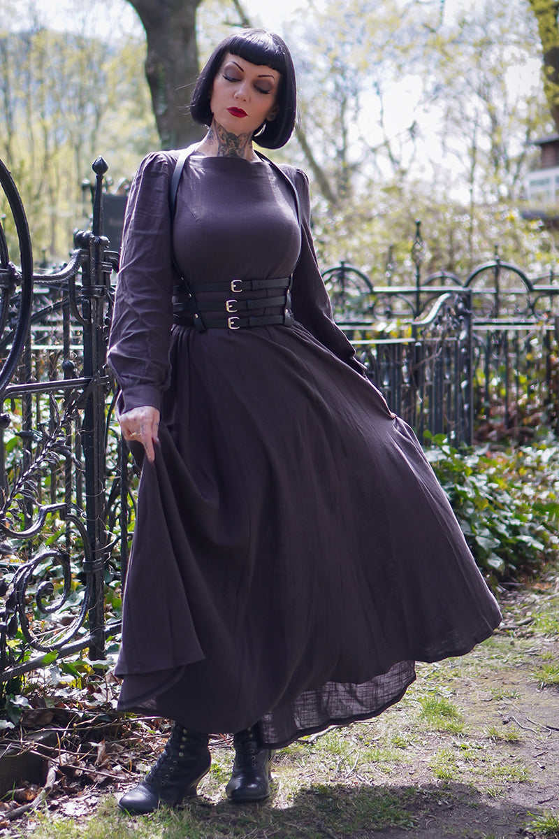 Vintage inspired Grey Long Linen Women's Modest Gothic Dress 3478