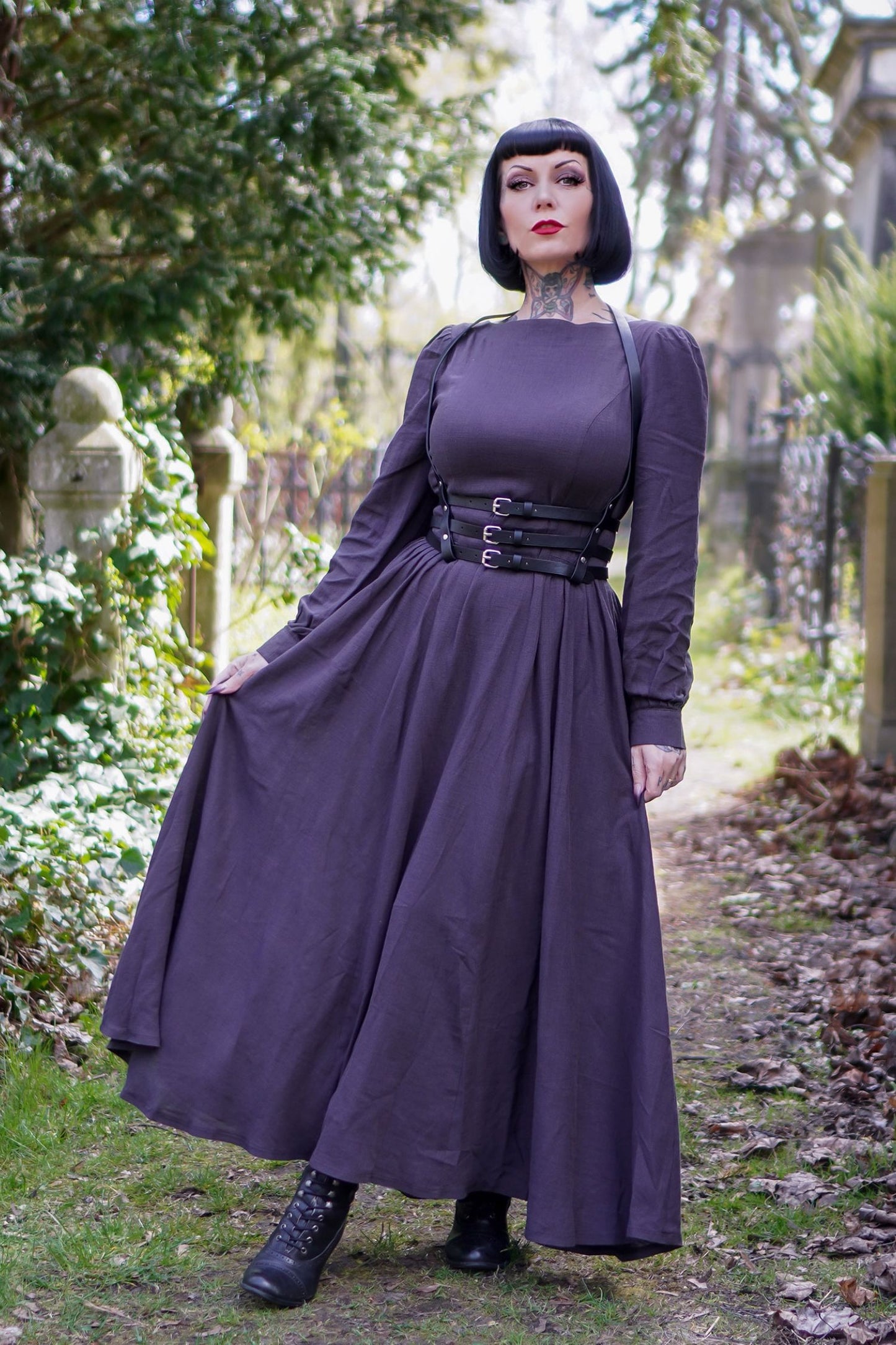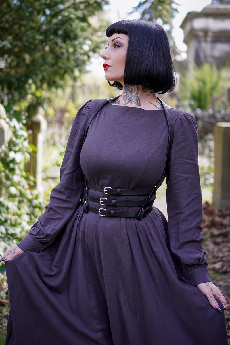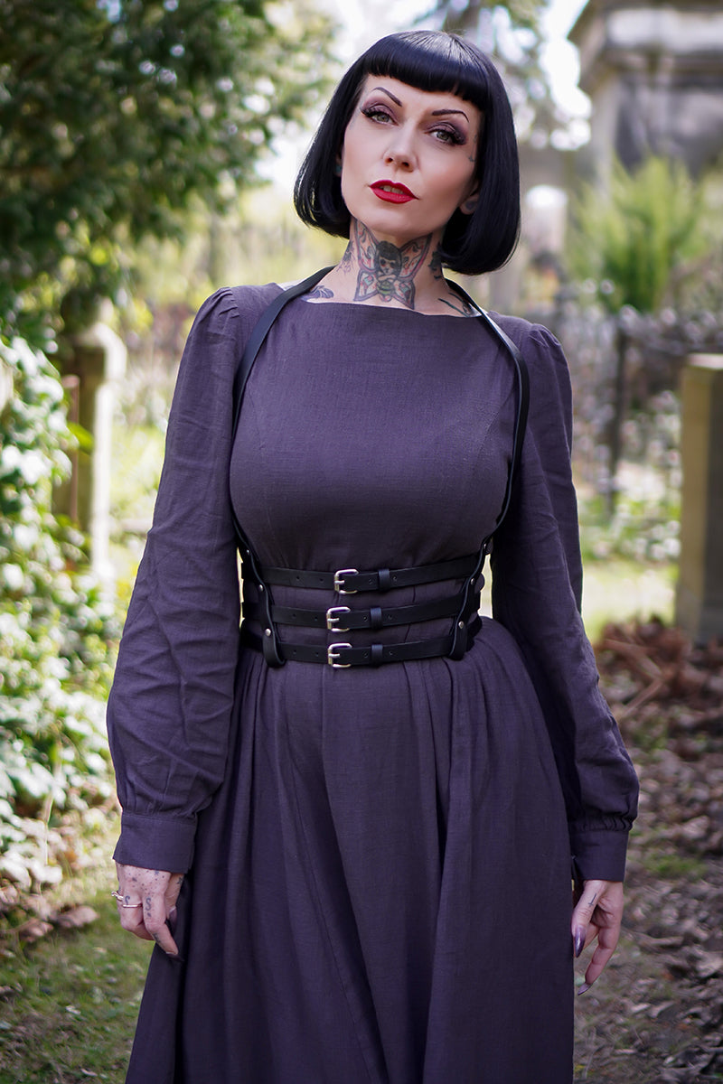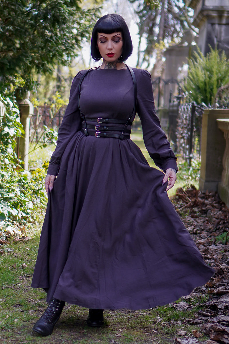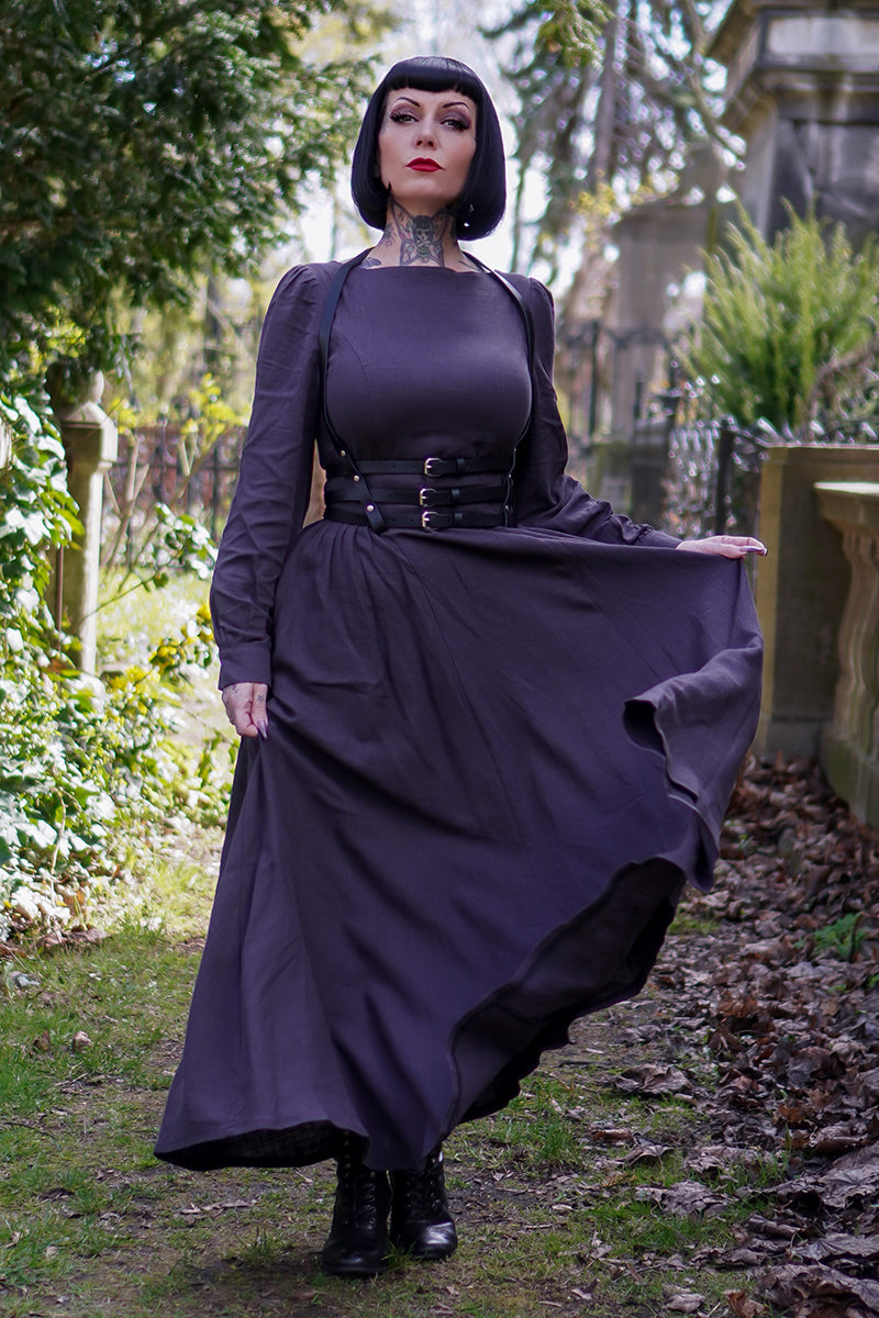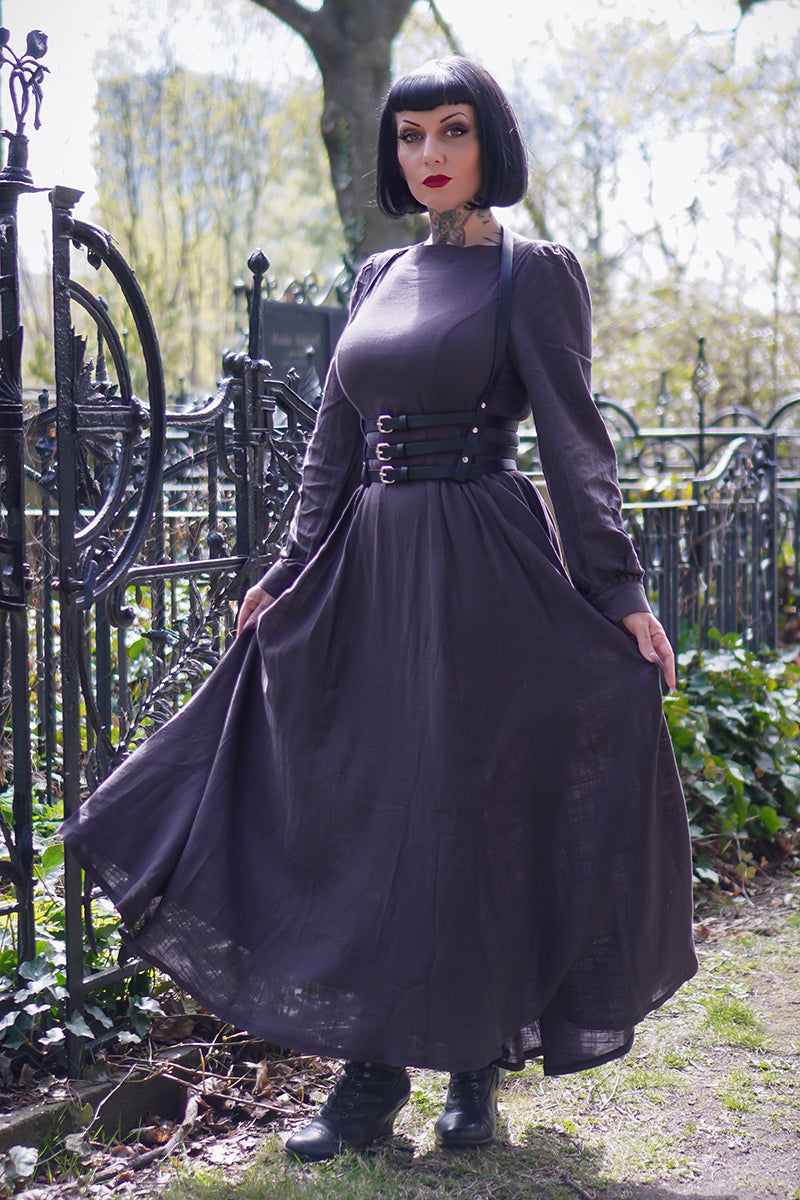 This Vintage inspired Grey Long Linen Women's Modest Gothic Dress is a timeless and elegant piece that exudes a touch of vintage charm. Made from high-quality linen, it offers breathable comfort and versatile style. Its modest design is perfect for any occasion, making it a must-have in every woman's wardrobe.
