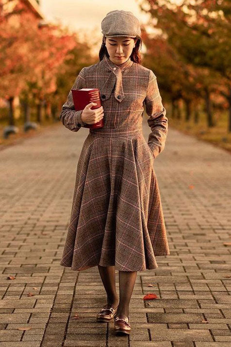 Crafted from high-quality wool, this vintage inspired dress is designed to elevate your style. With a classic plaid pattern and timeless silhouette, it offers a touch of nostalgia while remaining on-trend. Perfect for cooler weather, this dress is a must-have addition to any wardrobe, providing both warmth and sophistication.