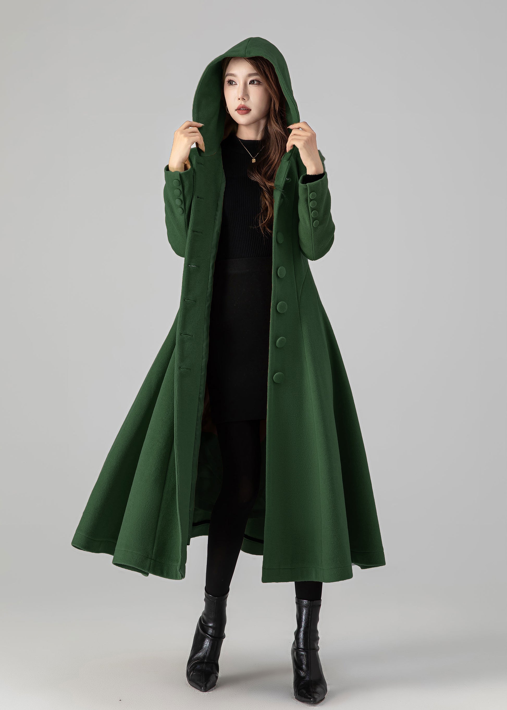 Perfected with warm hood, this wool coat is accented with long sleeve, and single breasted closure. This womens swing coat is a must-have for the cold-weather months ahead. Full lined.