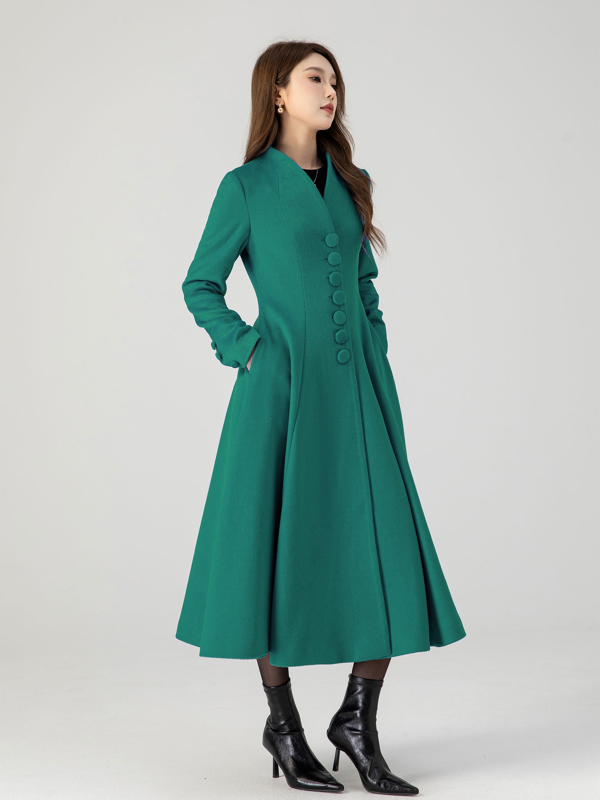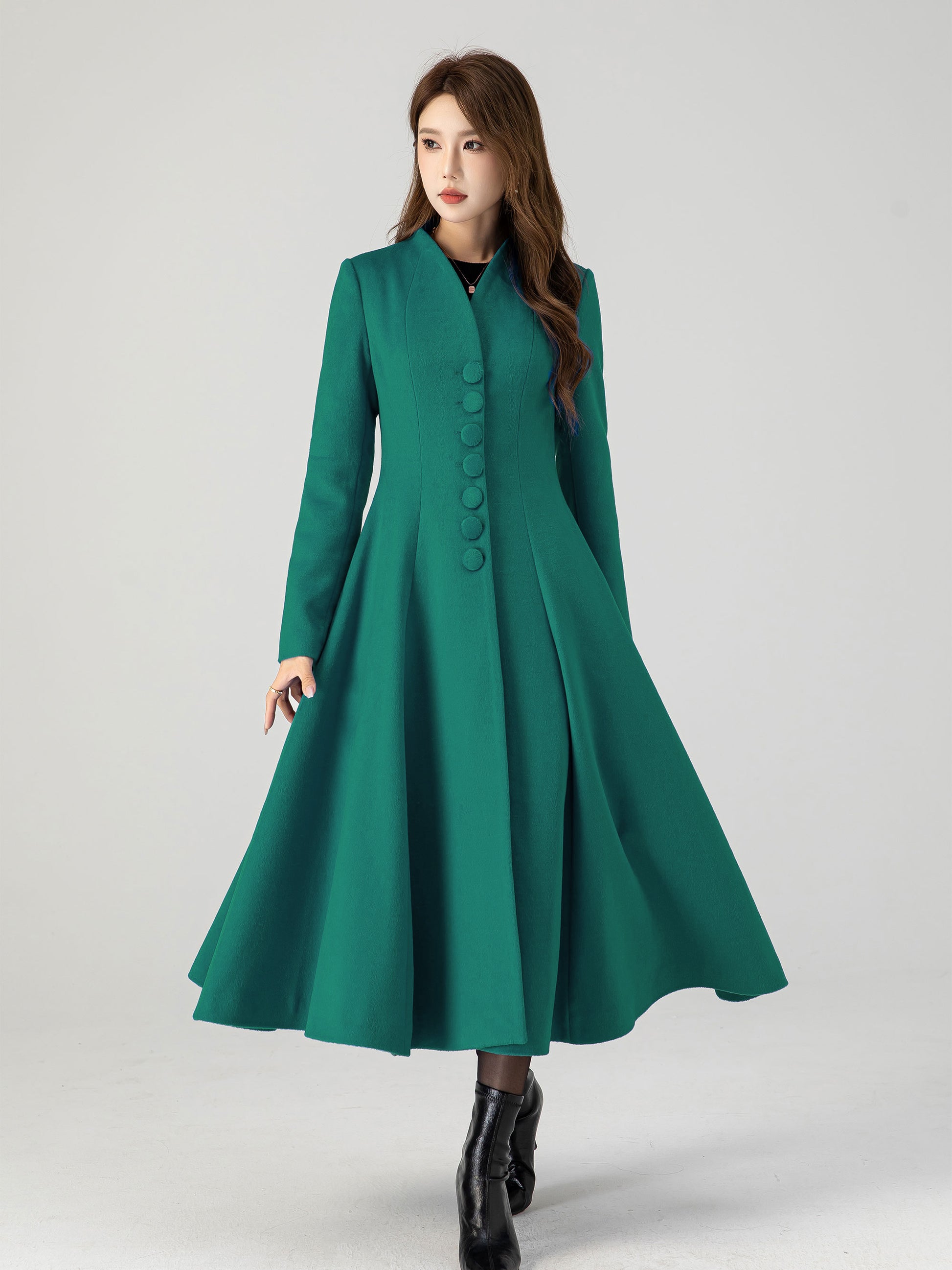 This stunning piece is the epitome of timeless elegance, featuring a graceful swing silhouette that adds a touch of glamour to any outfit. The rich green color complements a variety of styles and occasions, making it a versatile addition to your wardrobe. Crafted from high-quality wool, it provides both warmth and comfort during chilly seasons. Whether you're heading to a formal event or a casual outing, this blue swing coat will keep you looking effortlessly chic and feeling cozy.