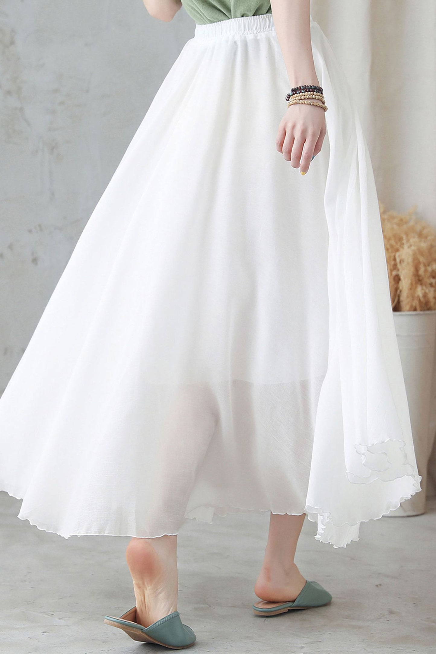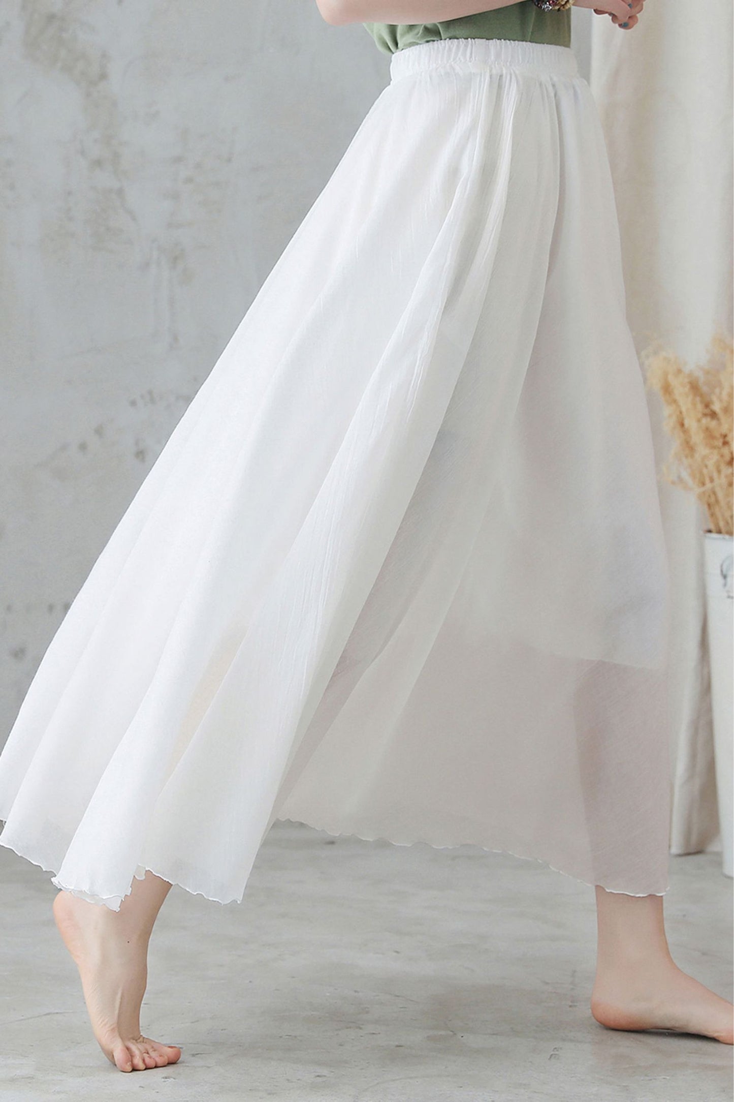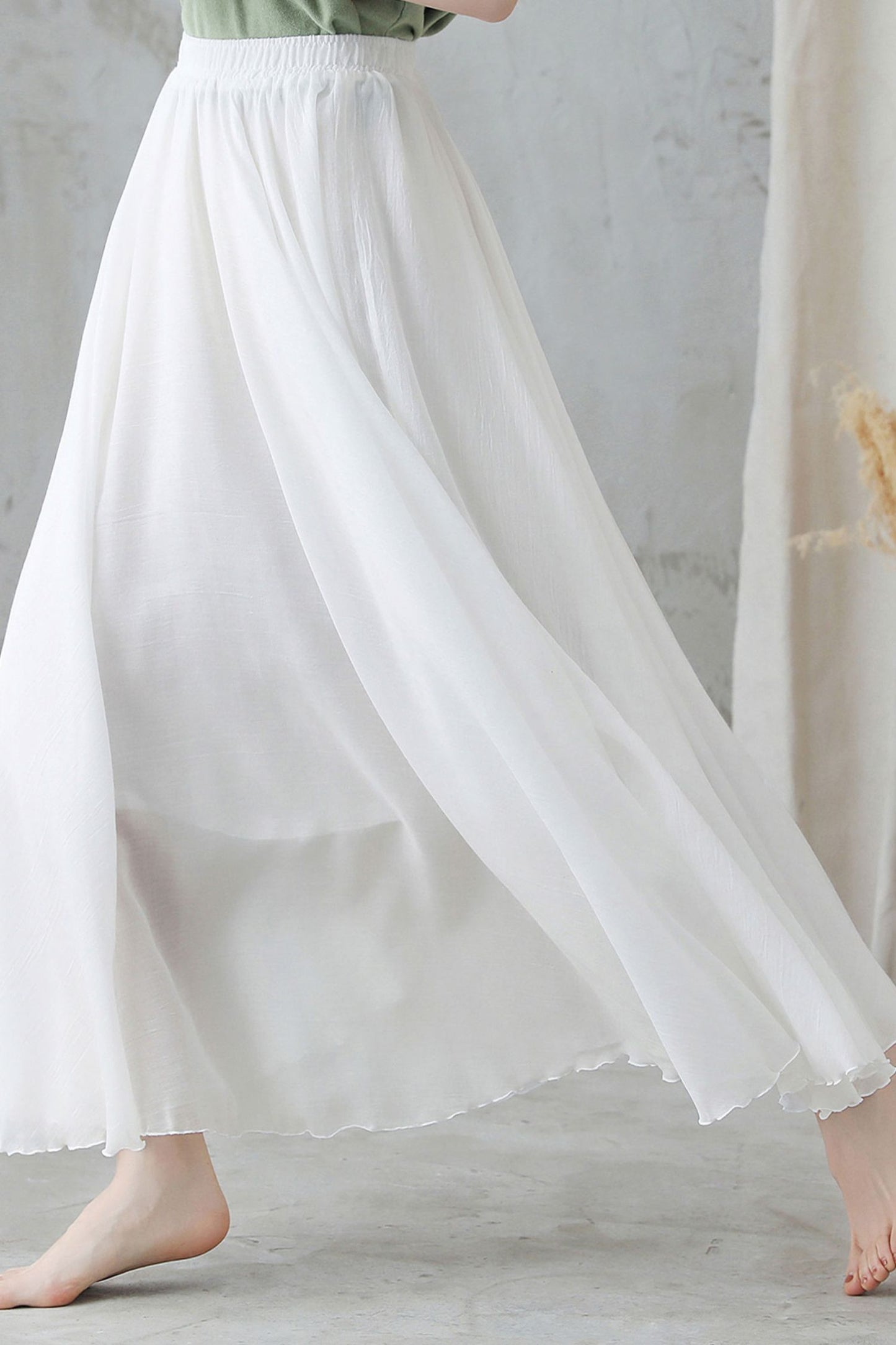 Elevate your summer style with our White Maxi Swing Skirt. Made from lightweight cotton linen, this skirt is perfect for warm days. Its elegant design and comfortable fit make it a must-have for any wardrobe. Experience the benefits of effortless style and comfort with our versatile White Maxi Swing Skirt.