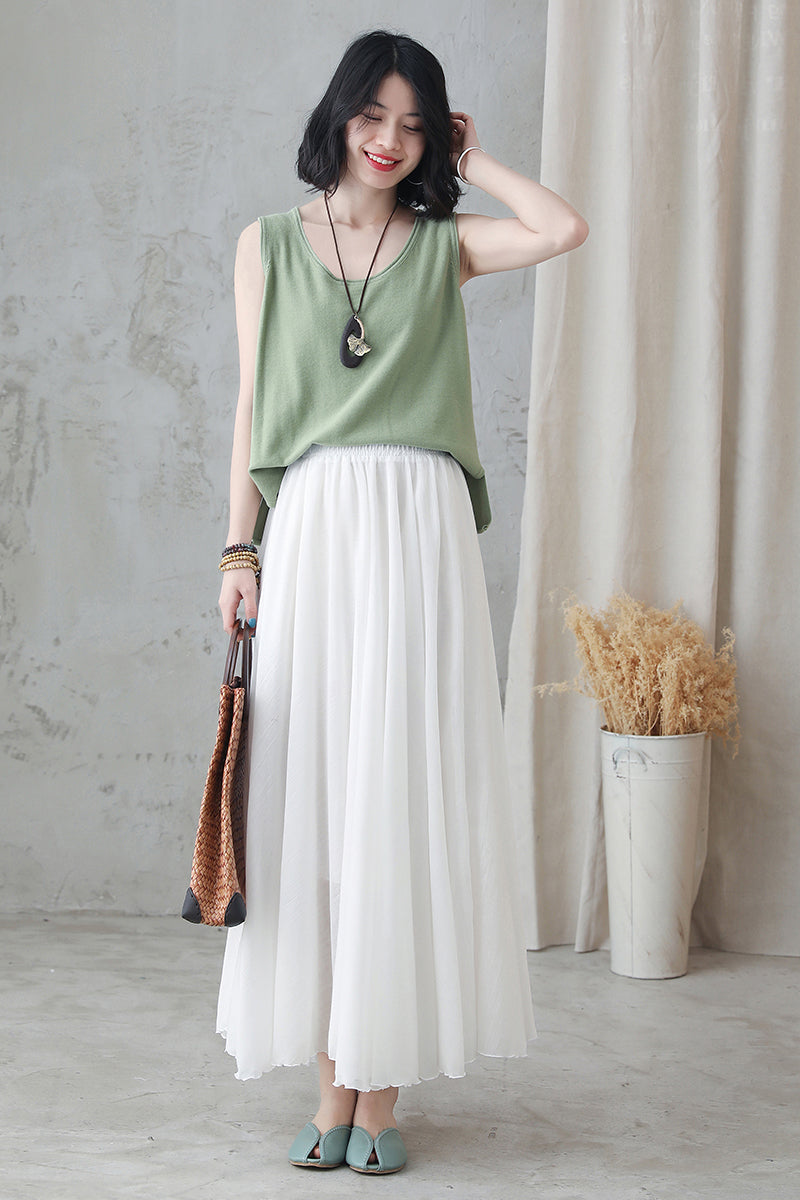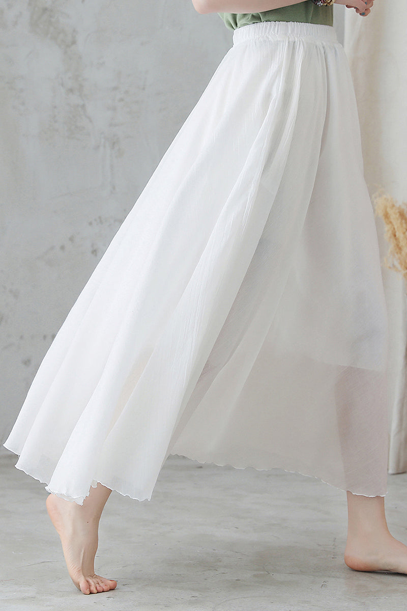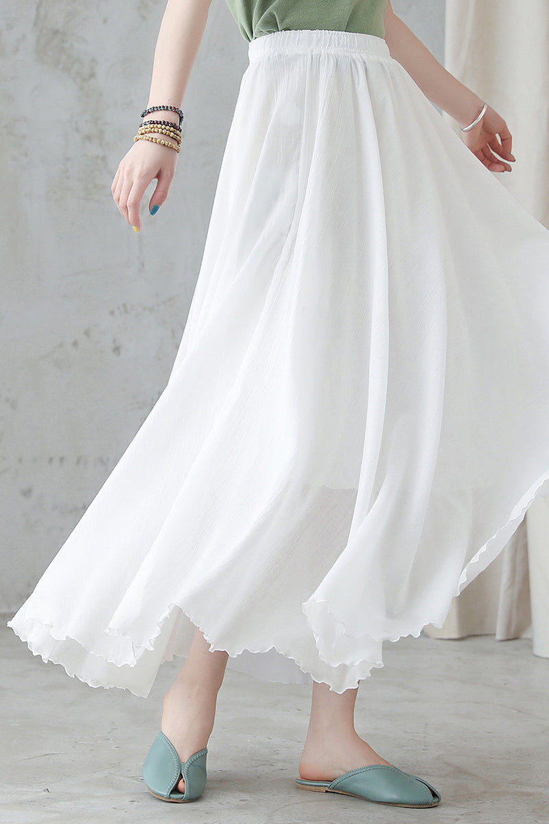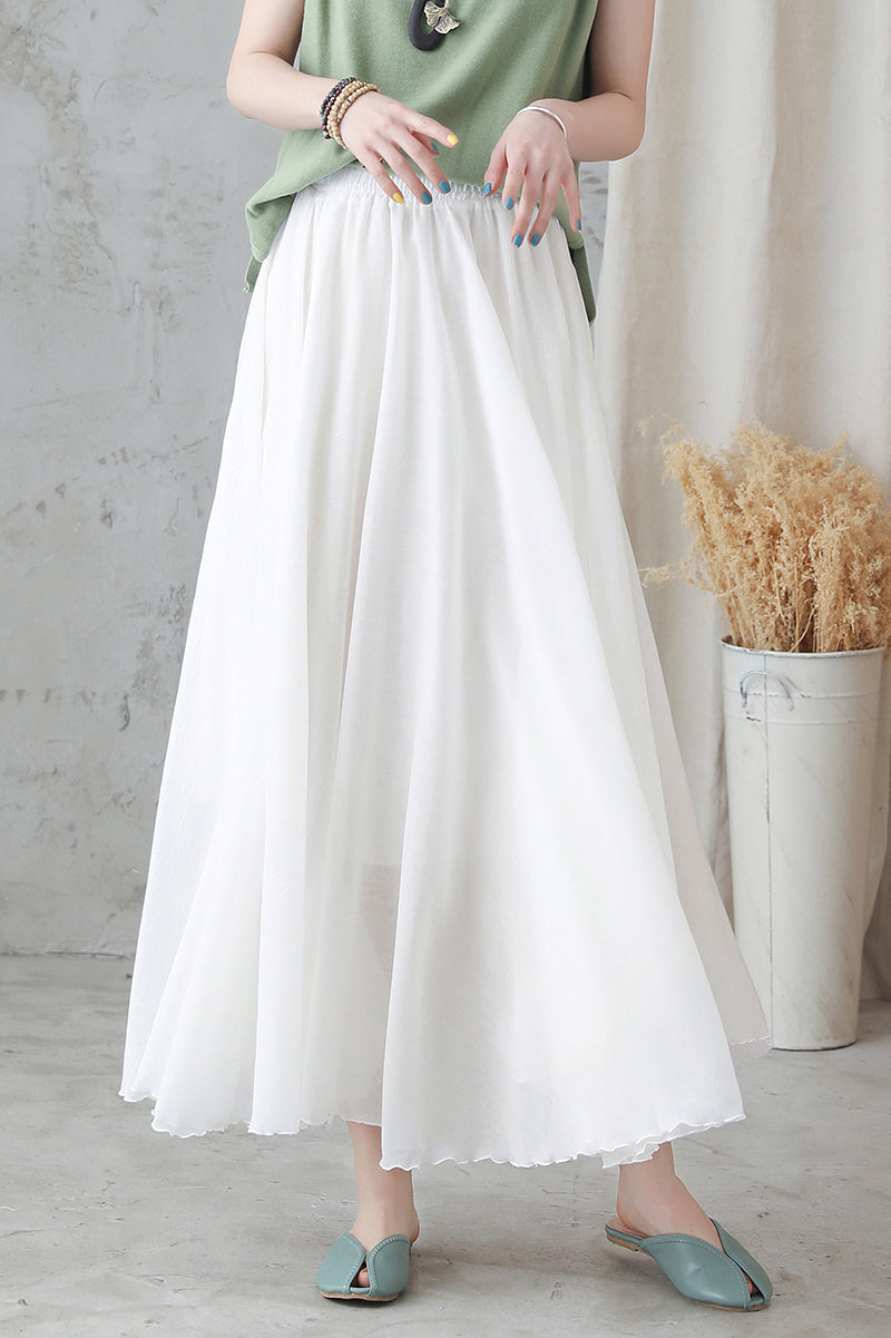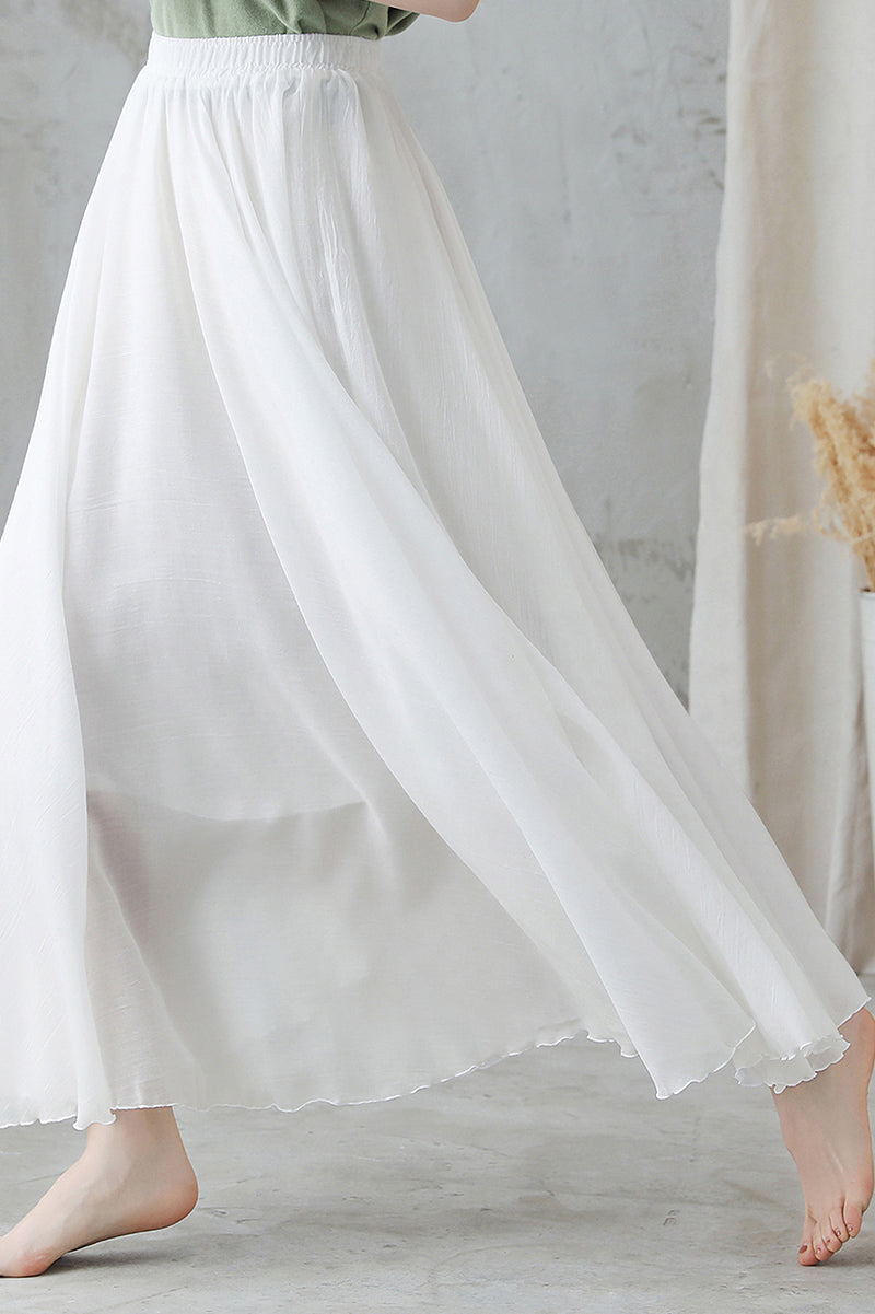 White Maxi Summer Women Cotton Linen Swing Skirt 2748