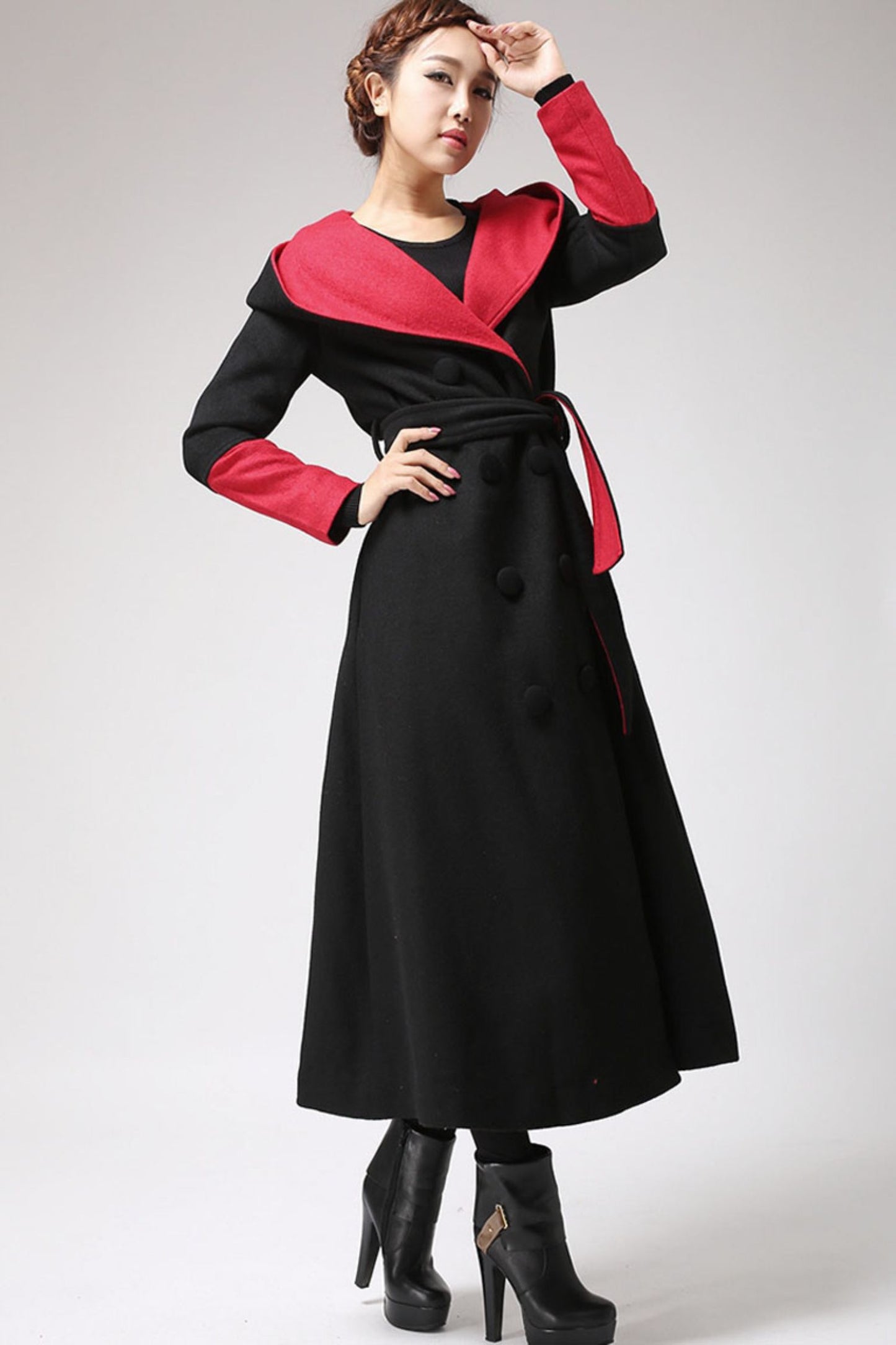 Opt for classic luxury with a modern twist with this black and red winter coat. Crafted from sumptuous cashmere, this elegant hooded coat will keep you warm and cozy in style all through the winter. You'll certainly stand out in the crowd with this one.