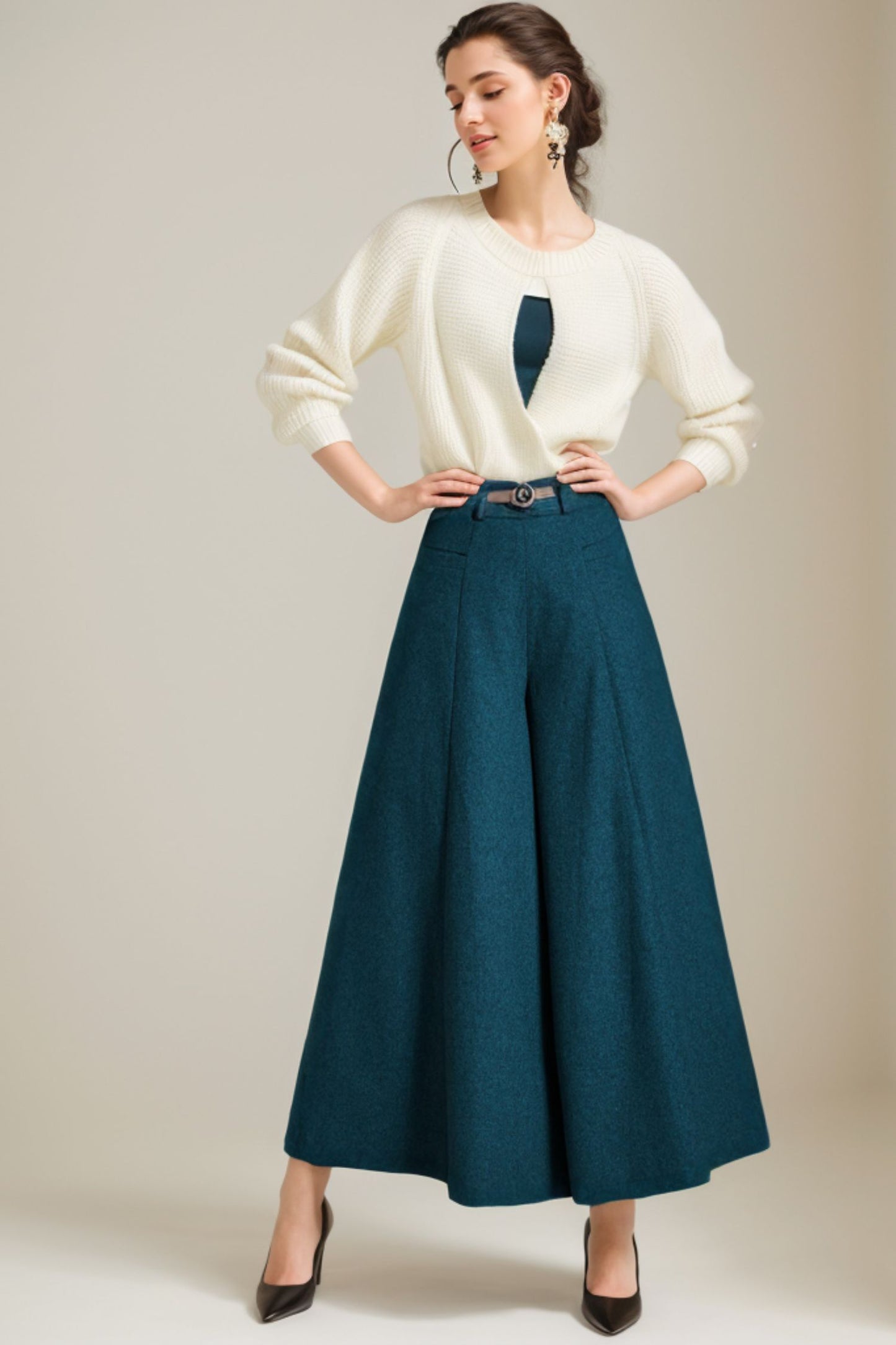 Expertly crafted for the colder months, our Winter Pleated Wide Leg Wool Pant (style 5232) offers both warmth and fashion. The pleated design adds a touch of sophistication, while the wide leg allows for comfortable movement. Made from high-quality wool, these pants are a must-have for your winter wardrobe.