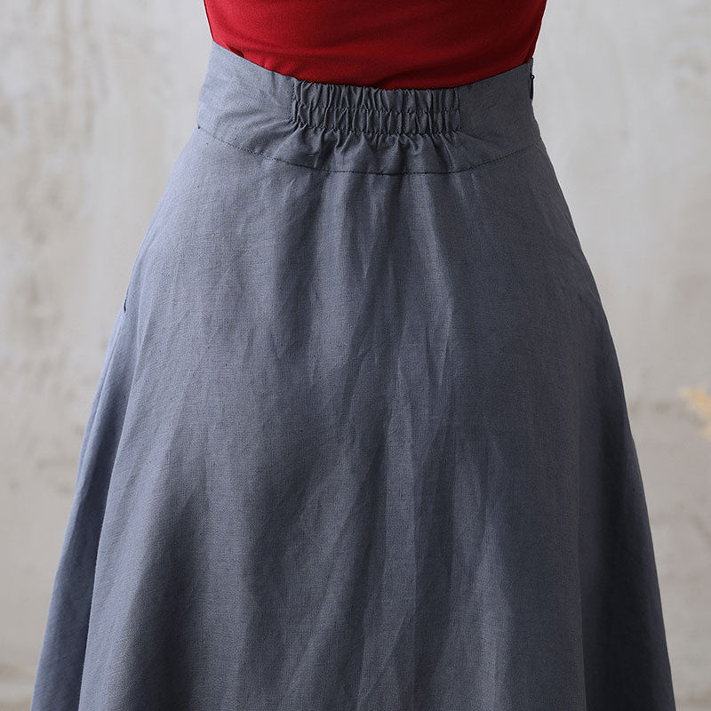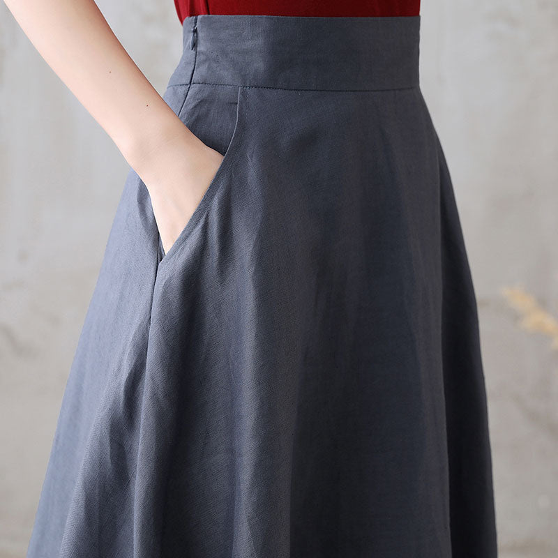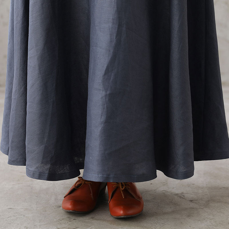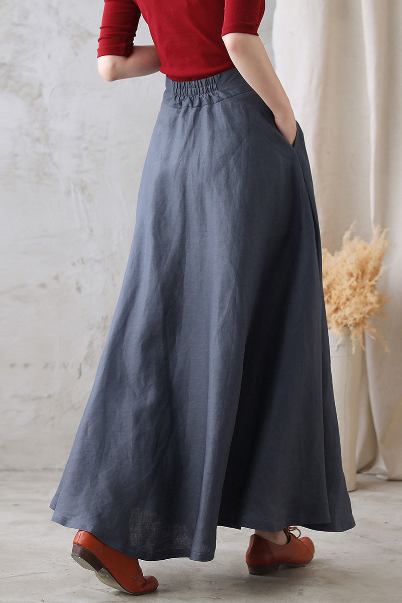 Women Autumn Flowy Swing Linen Maxi Skirt with Pockets 277101#