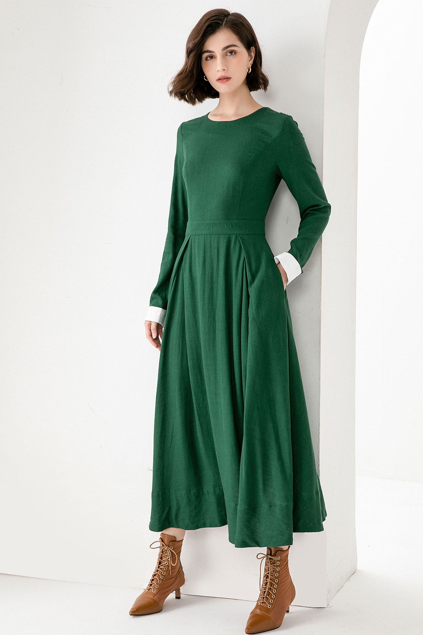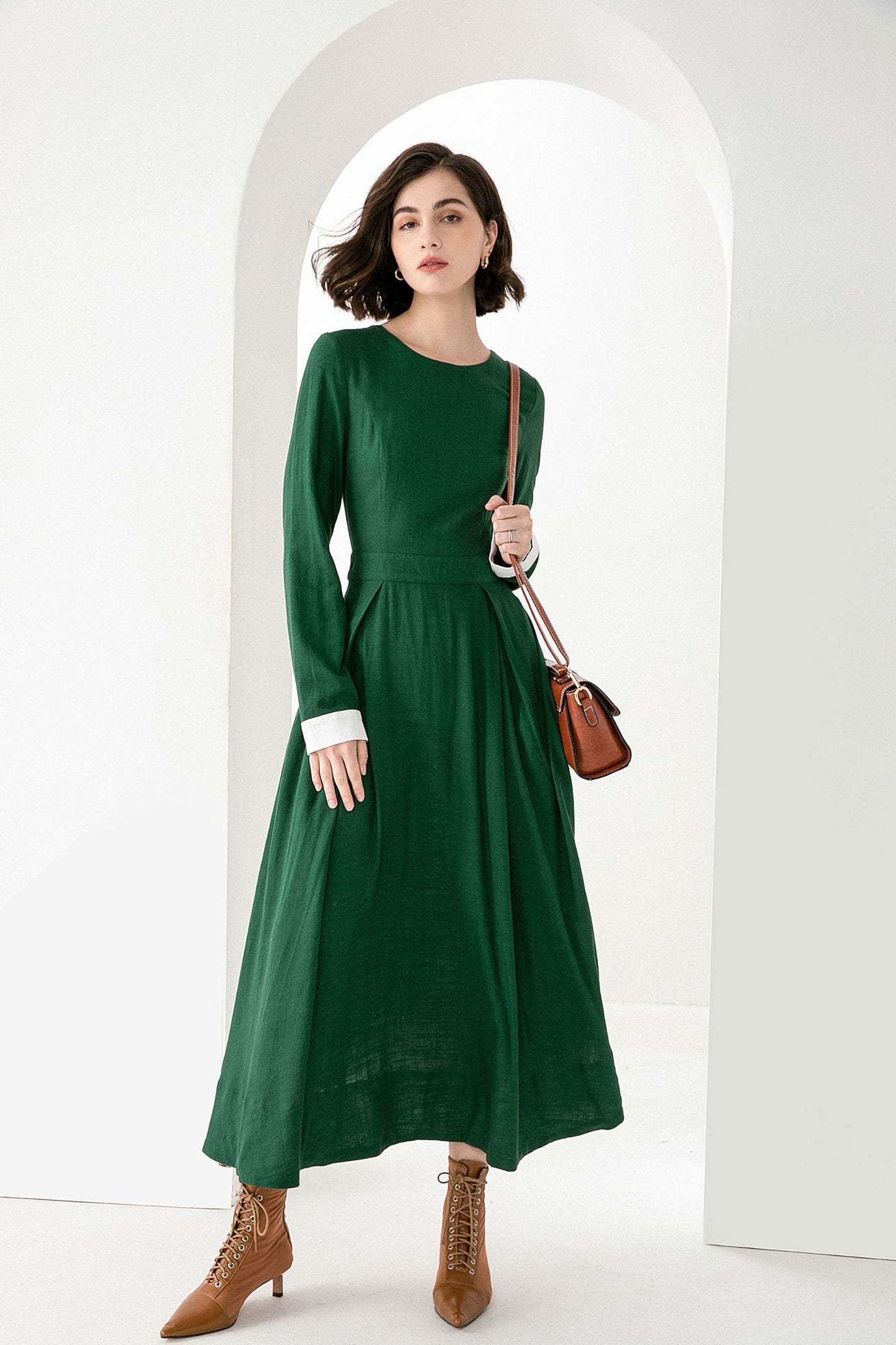 Upgrade your wardrobe with our Women Long Sleeve Maxi Linen Dress. Featuring a classic long sleeve design and luxurious linen fabric, this dress exudes elegance and comfort. Perfect for any occasion, it will be a staple in your closet for years to come. Available in various sizes and colors.