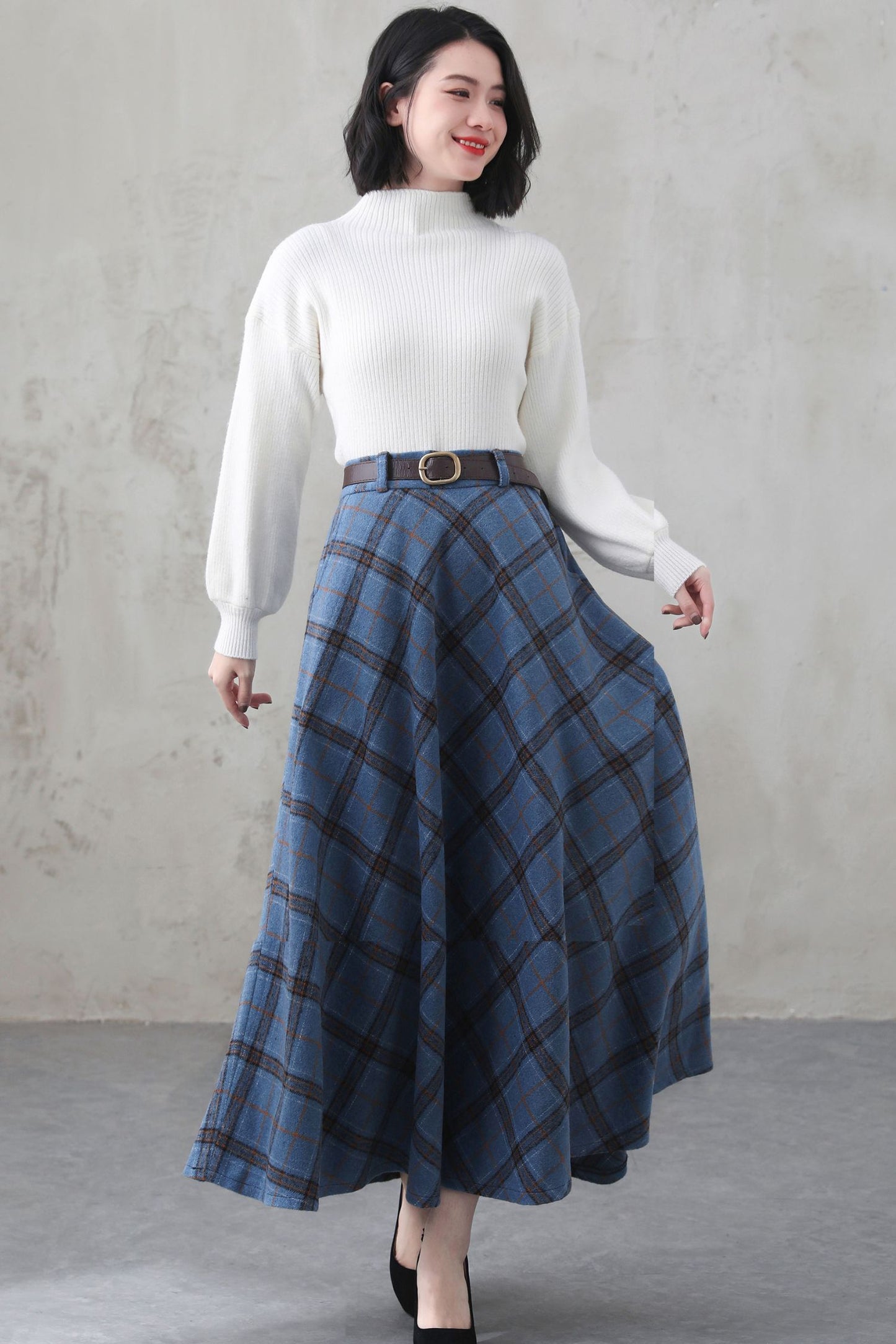 This winter wool skirt is a classic piece of tailoring that will see you through rain or shine. It is cut with a flattering flared skirt to give you a wonderful shape. The winter skirt is perfect classic styling and ends at the ankle. This is a versatile skirt that you'll wear again and again.