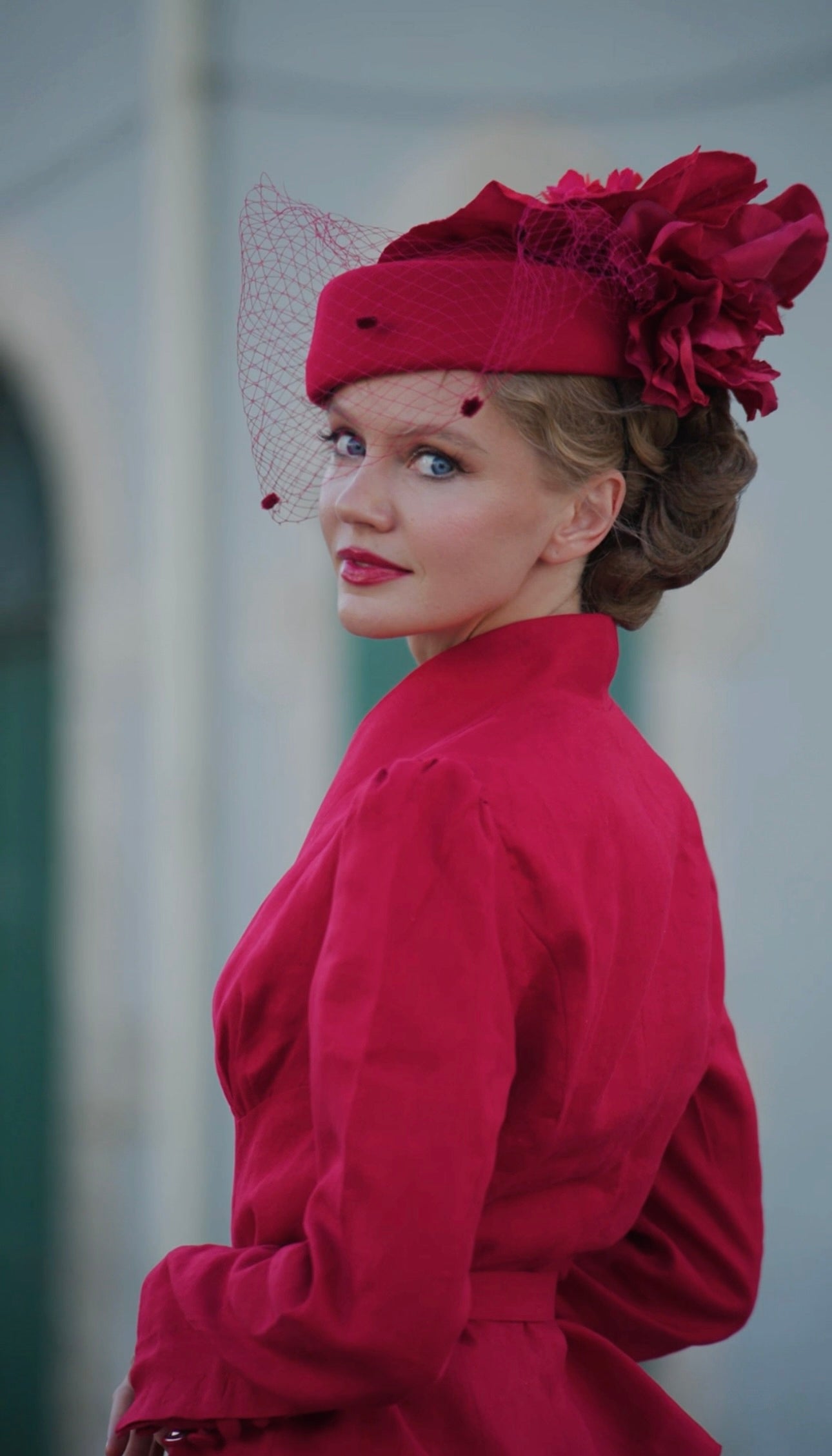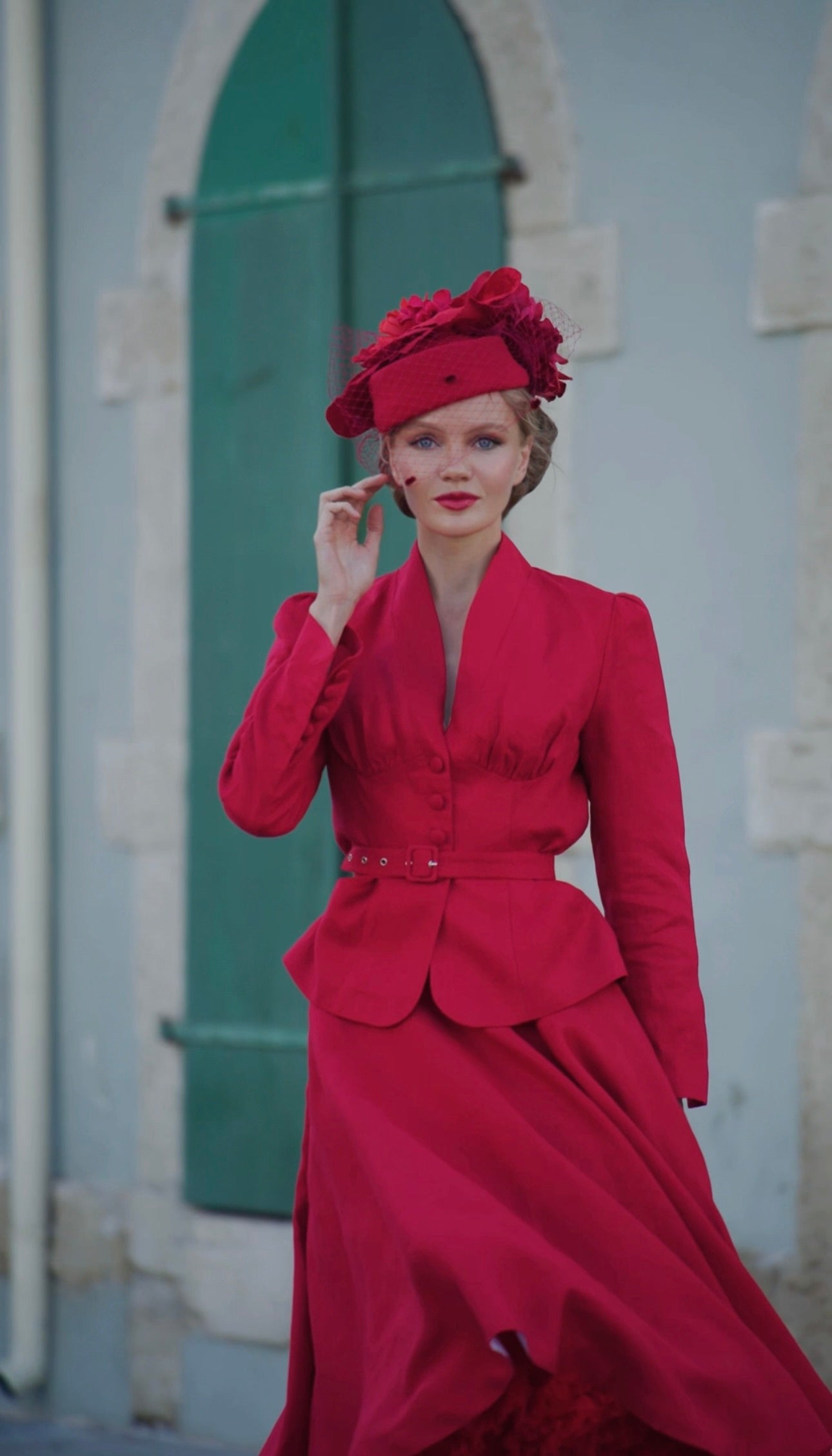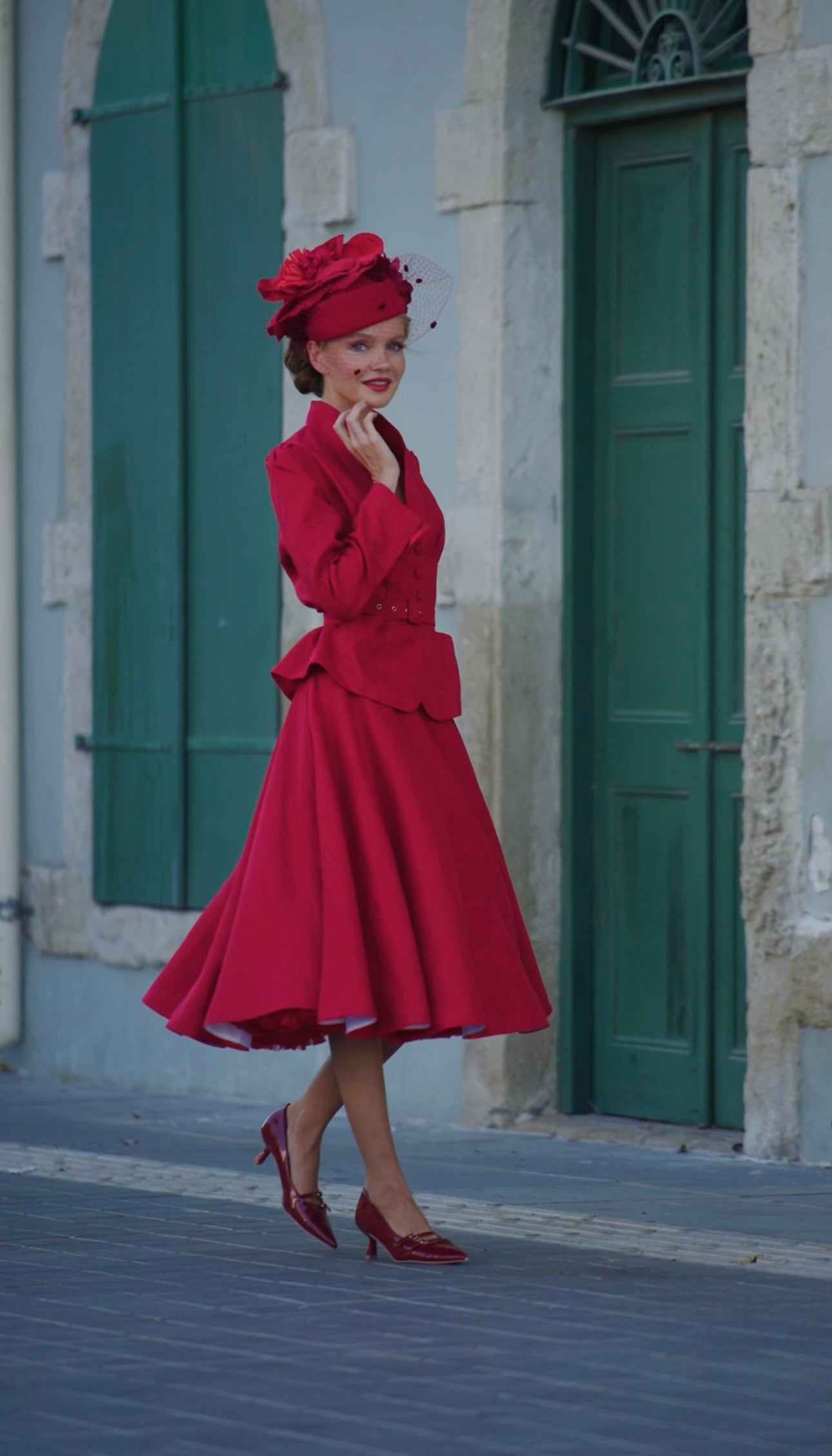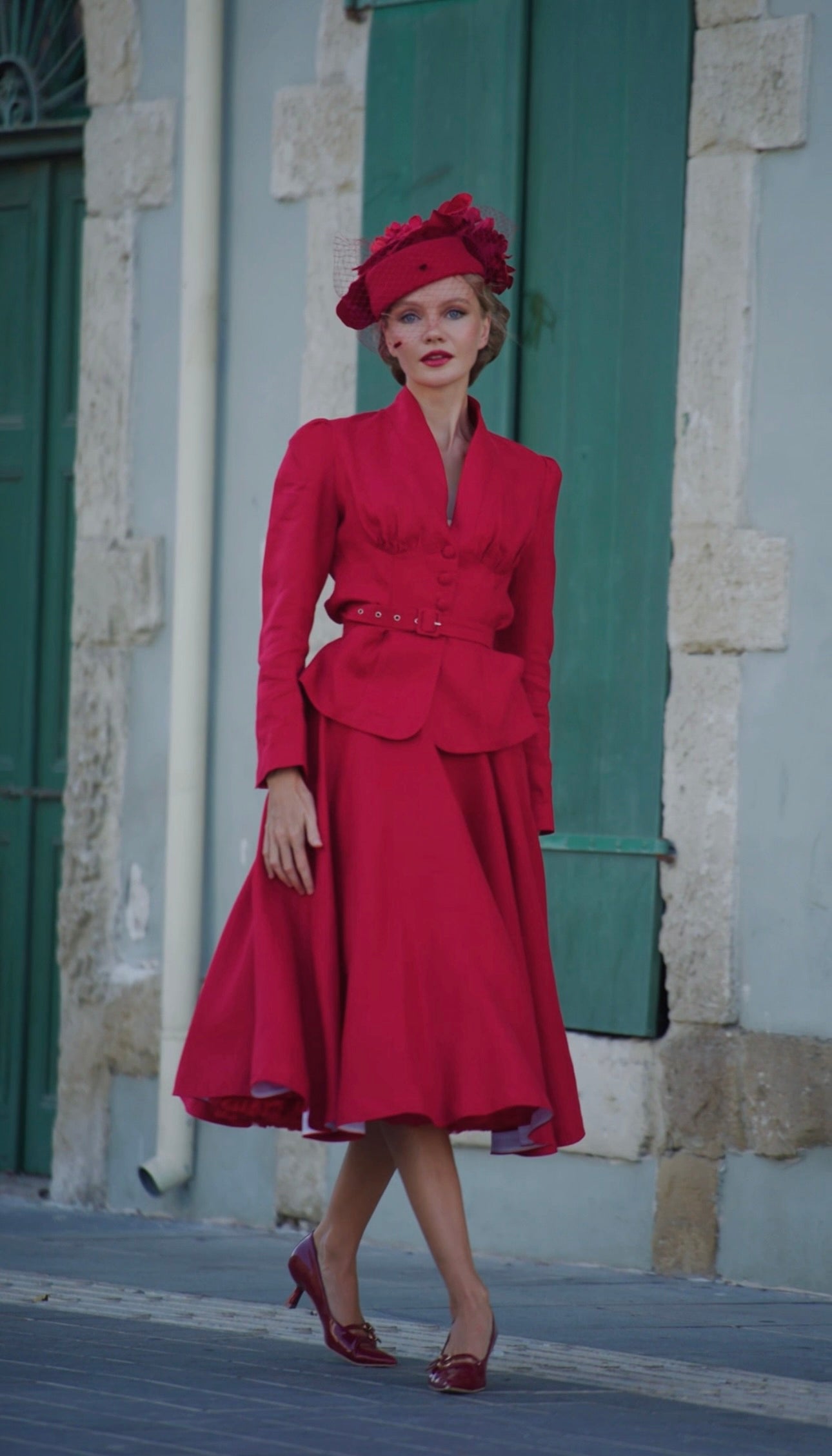 Thanks for @tanysunnyart wear Xiaolizi's suit. Turn heads with this red linen two-piece set, designed for effortless elegance andtimeless charm. The tailored V-neck blazer top creates a flattering silhouette, whilethe flowing A-line midi skirt falls gracefully to mid-calf, offering both comfort andsophistication.